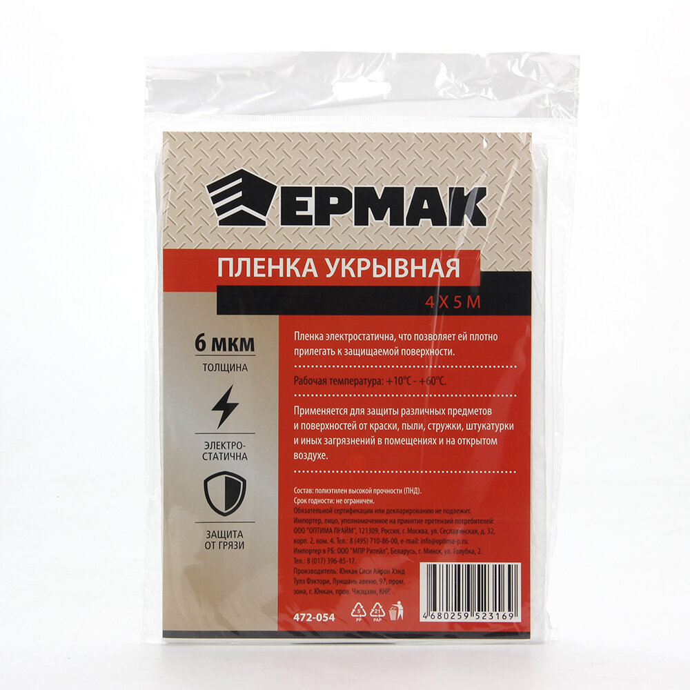 Пленка укрывная 4 х 5м, 6мкм ермак