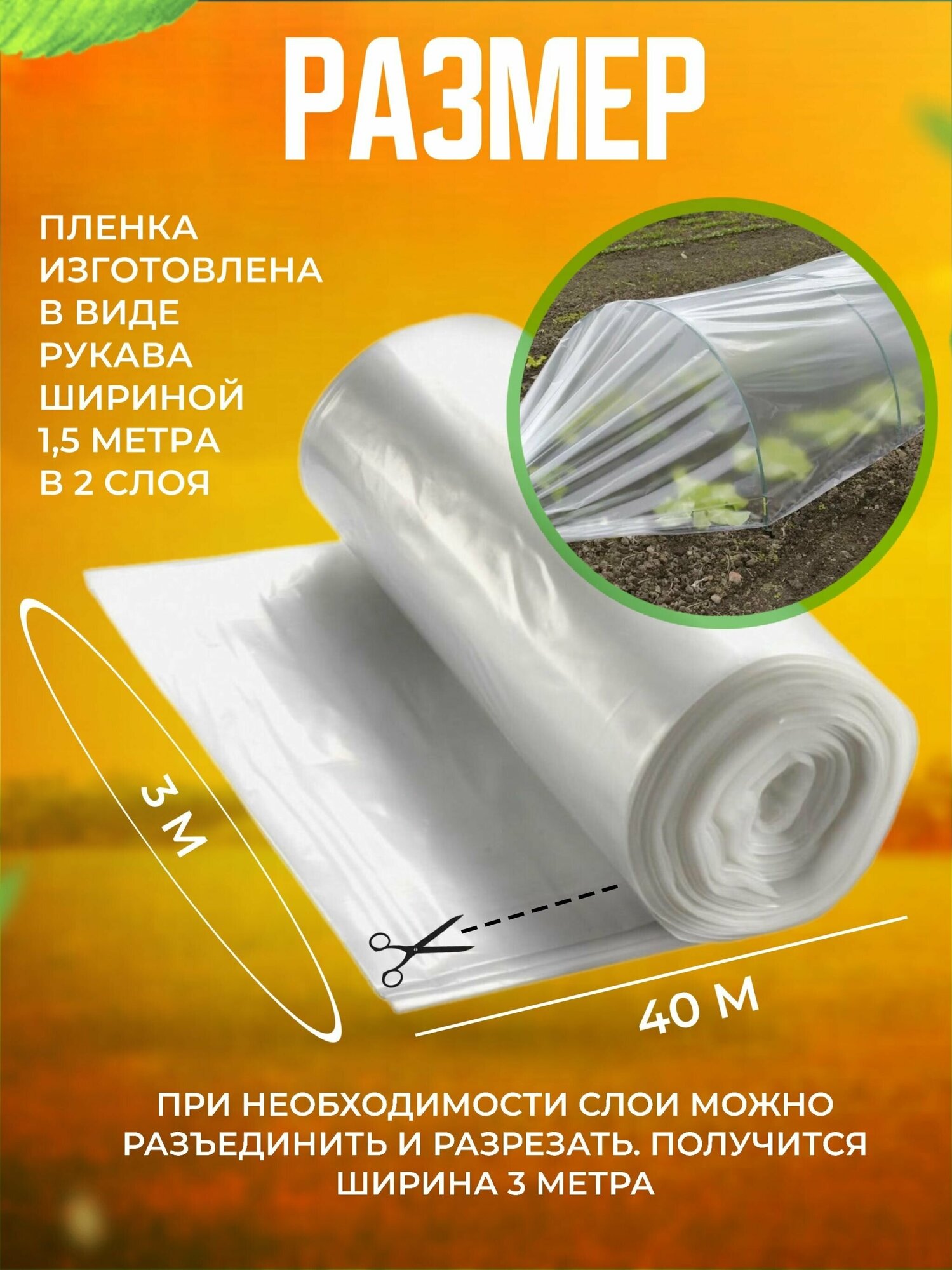 Пленка укрывная для ремонта, теплиц, авто и мебели. Полиэтиленовая.40мкр 3х40м