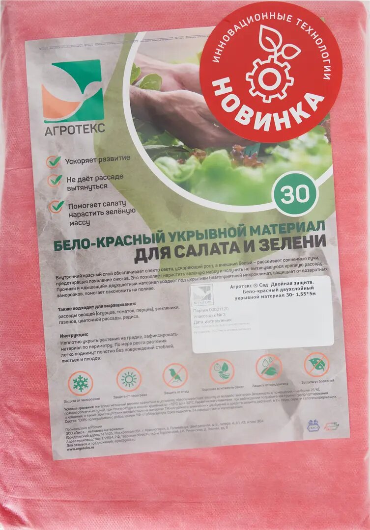 Спанбонд-60, двойная защита, 3х10м бело-красный коробка (8/1) Агротекс Форма выпуска пакет, размер .