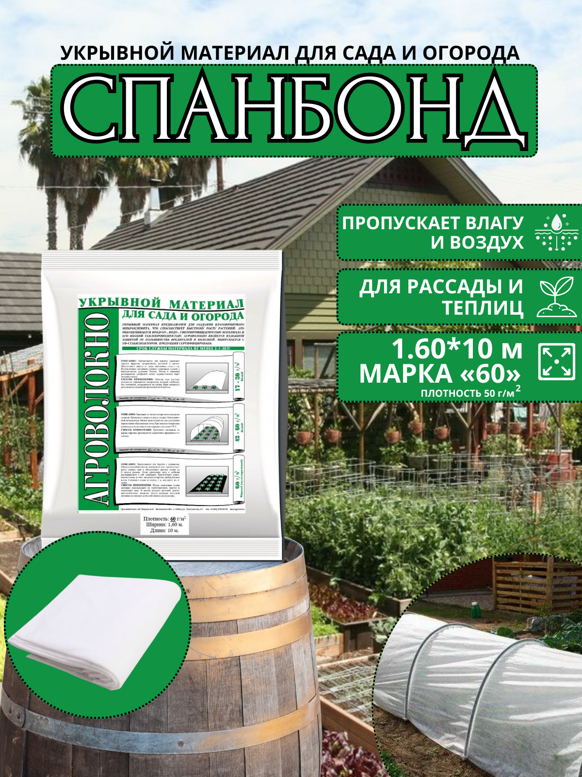 | Назначение | для защиты от морозов, для теплиц, для укрытия растений |