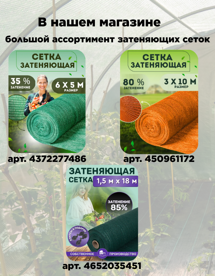 СохранитьСетка затеняющая зеленая, затенение 35%, размер 3х2м интересное: