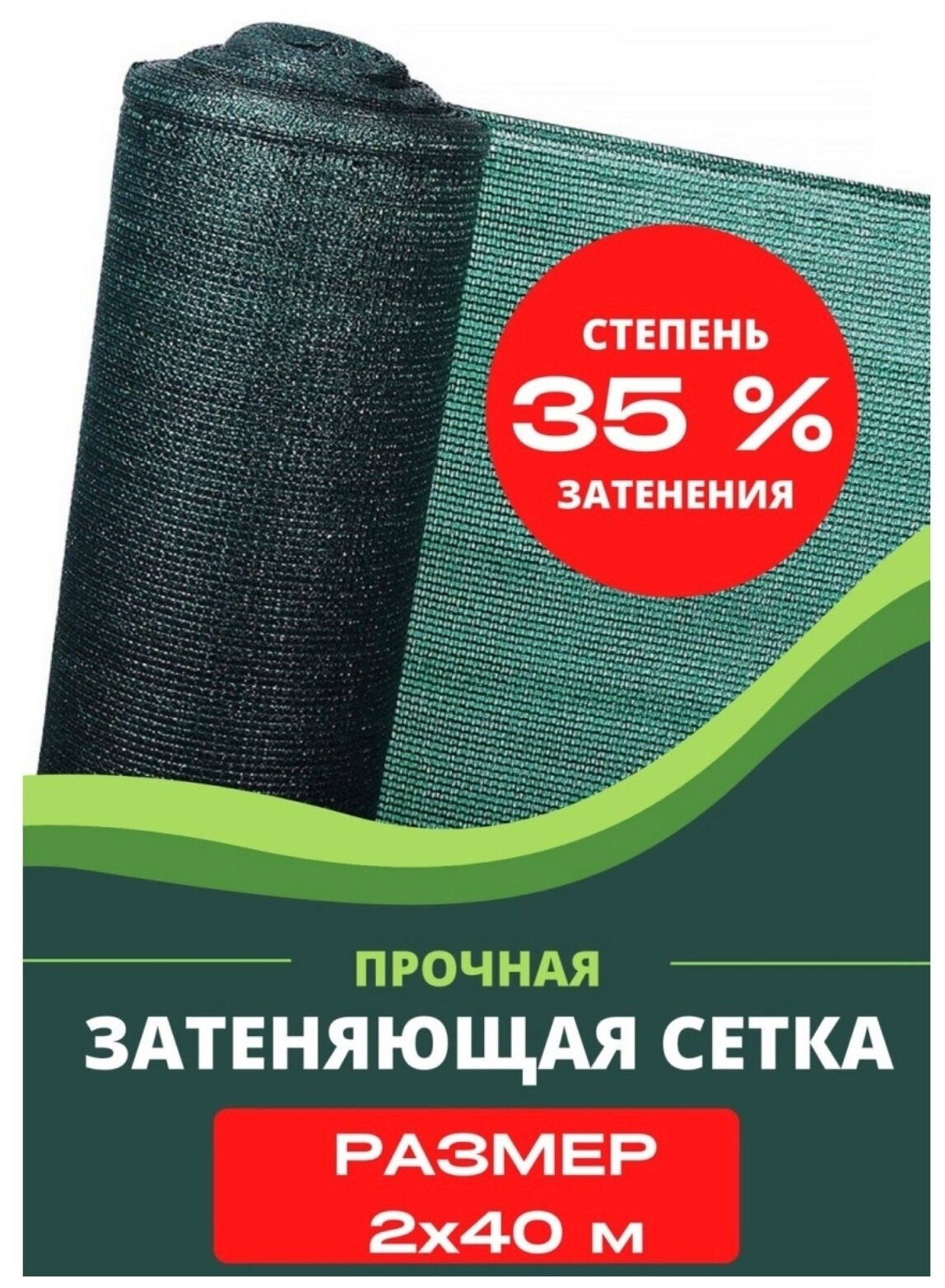 Сетка затеняющая зеленая, затенение 35%, размер 3х40м