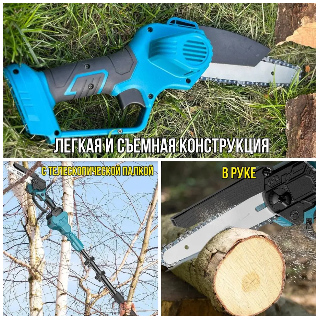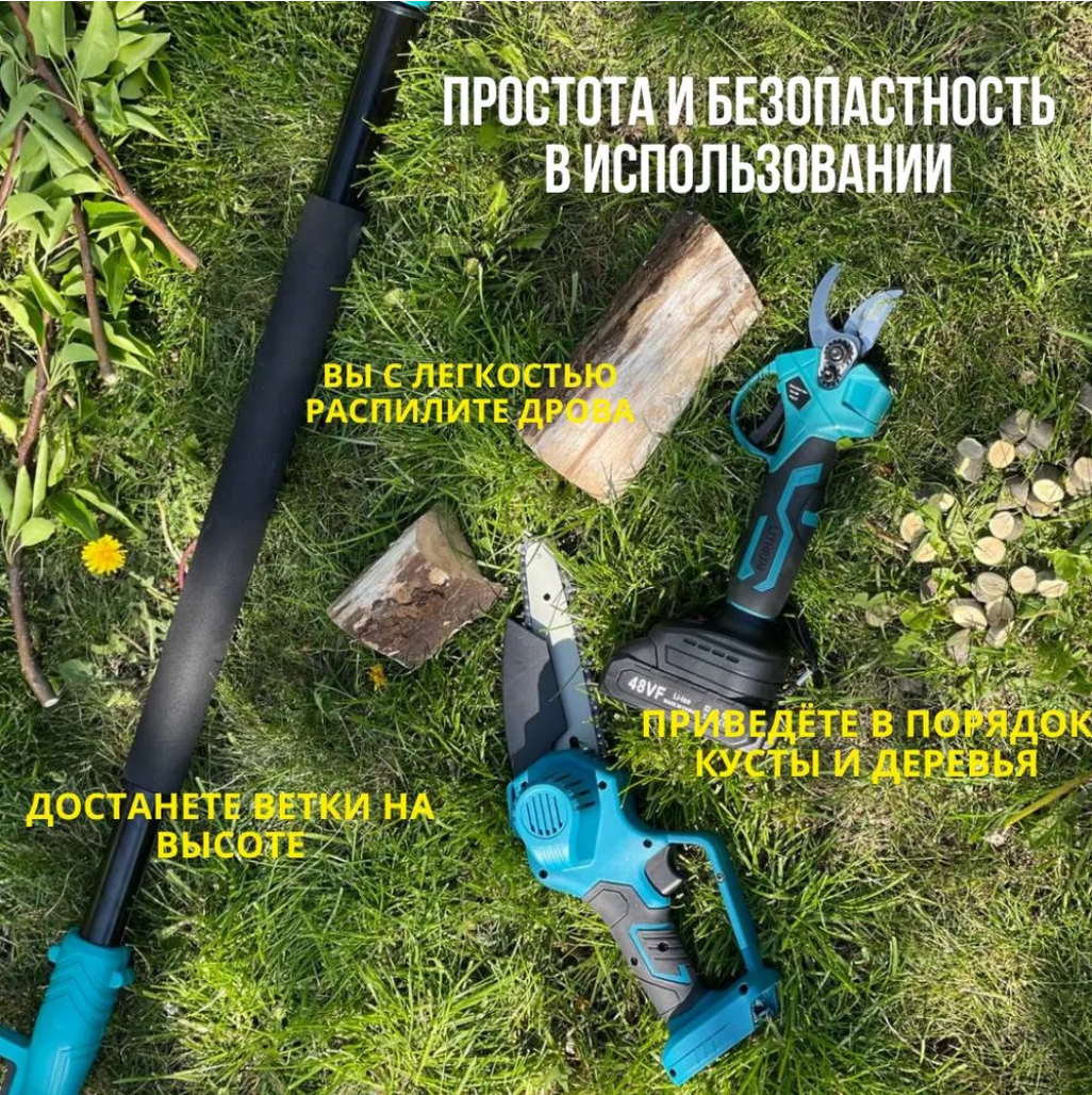 Набор аккумуляторный 3в1 Цепная пила(сучкорез)+Секатор+Телескопическая штанга+2акб 48Vf интересное: