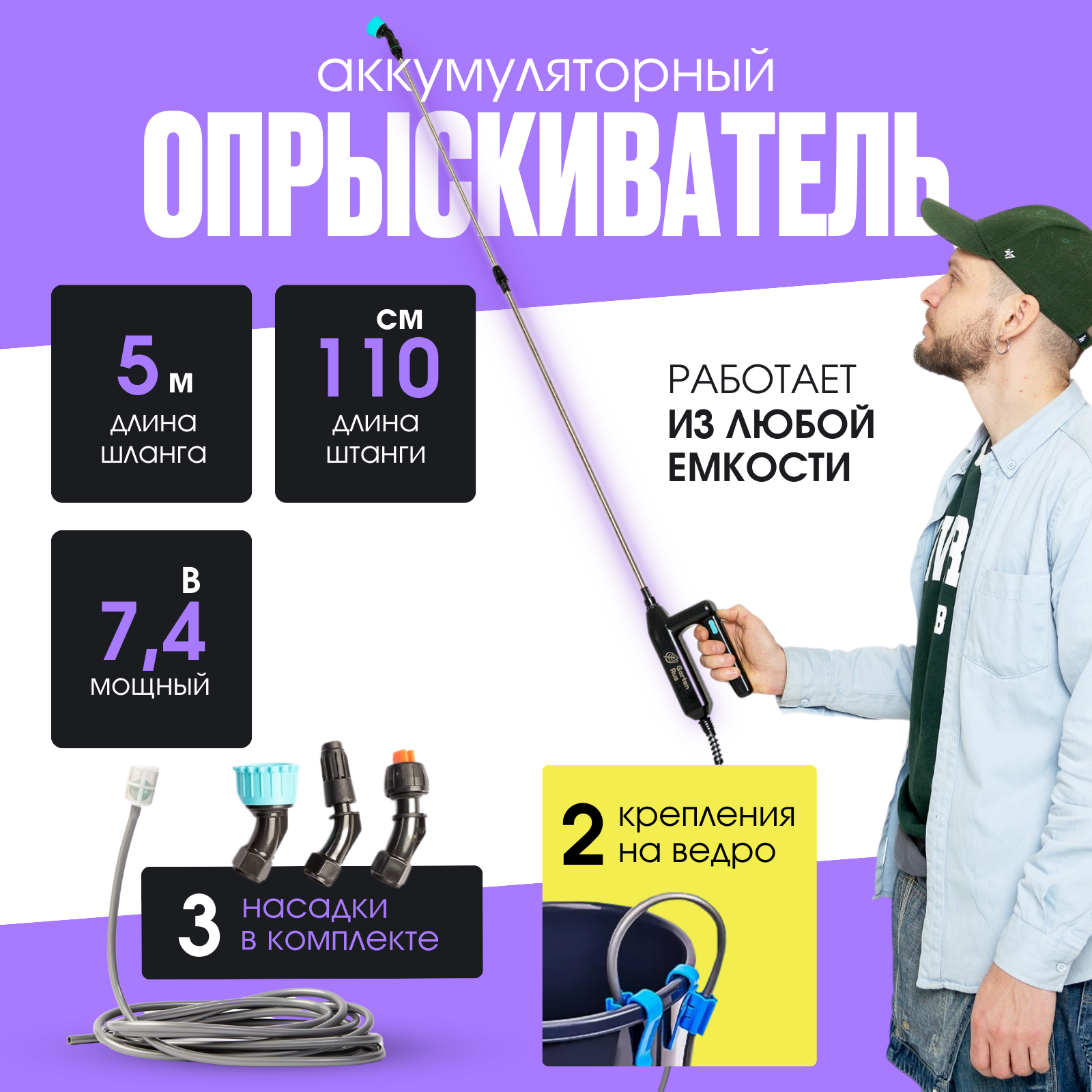 опрыскиватель аккумуляторный садовый 7,4 В штанга 110см интересное: