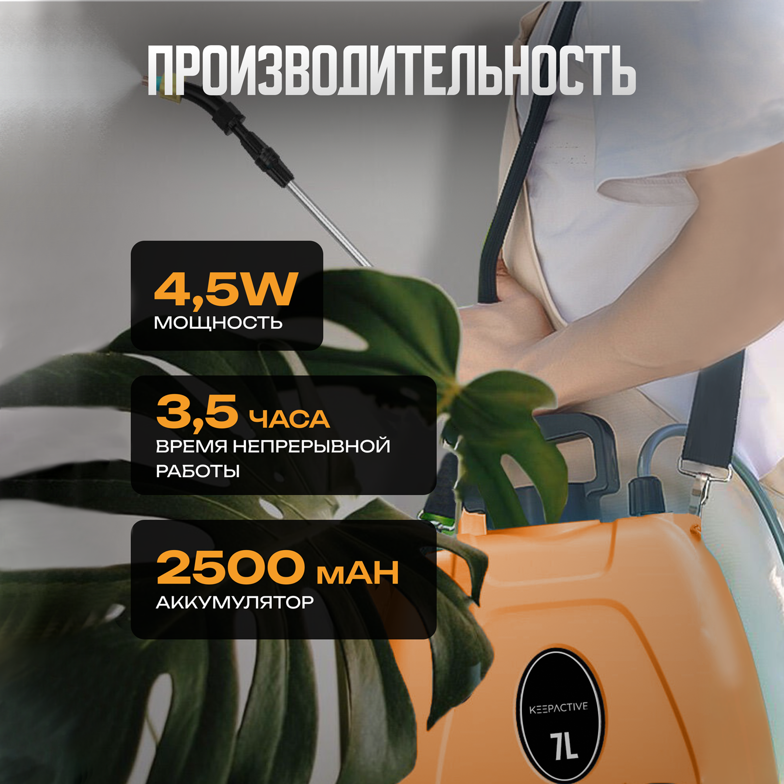 Опрыскиватель садовый аккумуляторный, распылитель для воды и химикатов, KEEP ACTIVE, 7 литров интересное: