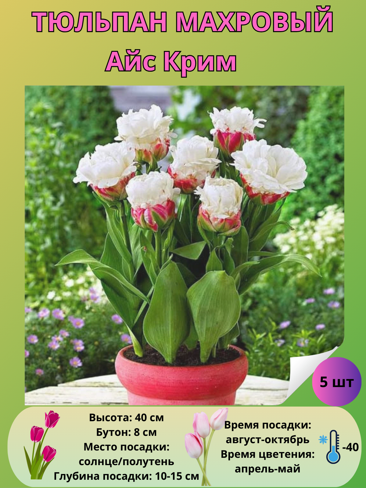 Купить Тюльпан махровый Айс Крим, многолетние растения, луковицы