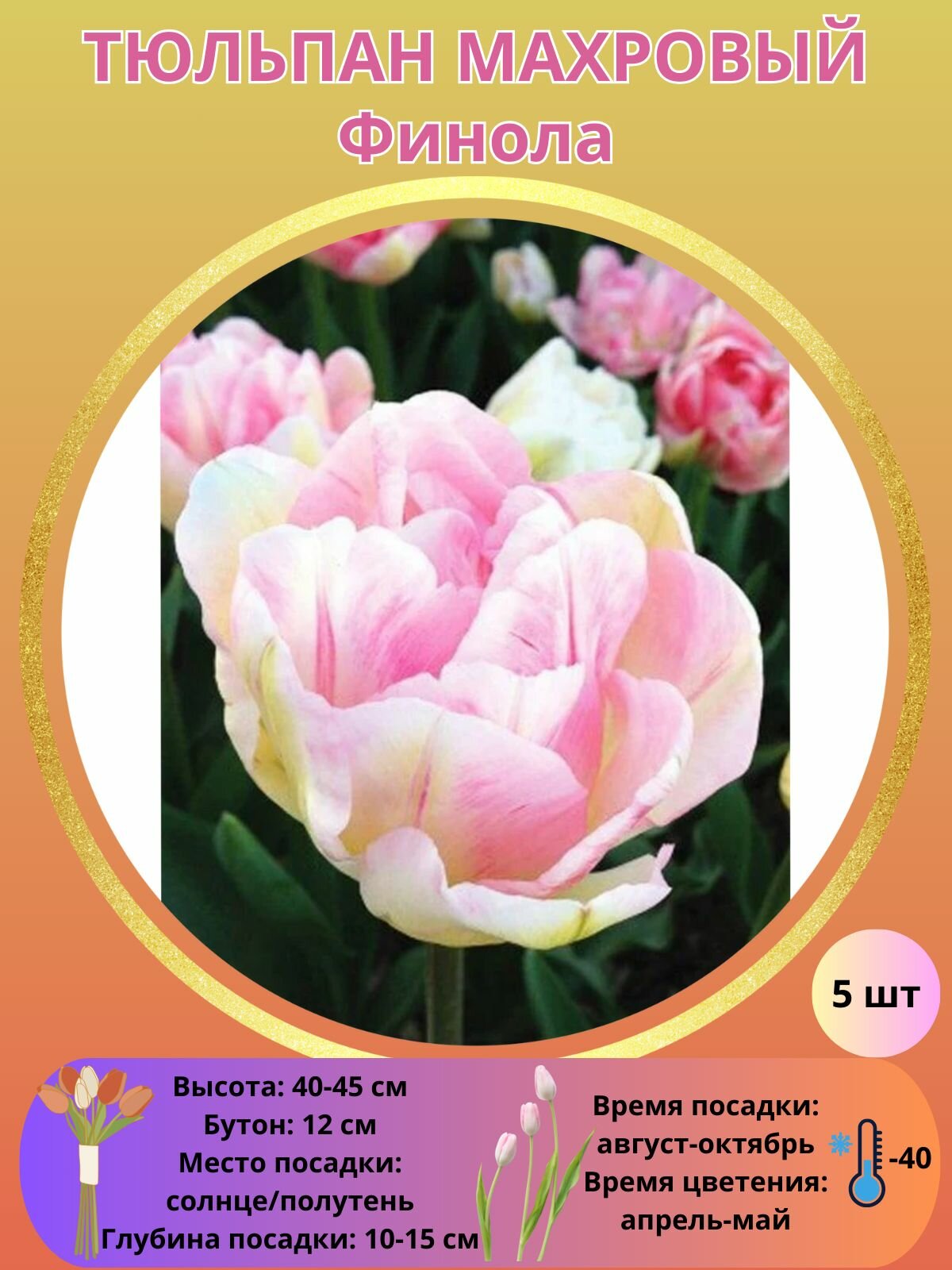 Купить Тюльпан махровый Финола, многолетние растения, луковицы