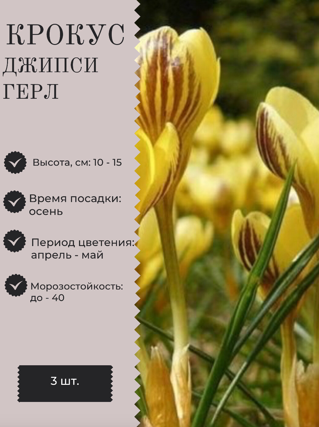 Ниже Вы можете прочитать отзывы на Крокус луковицы многолетних цветов, ознакомится с подробными характеристиками, посмотреть интересные обзоры и фотографии на Крокус луковицы многолетних цветов.
