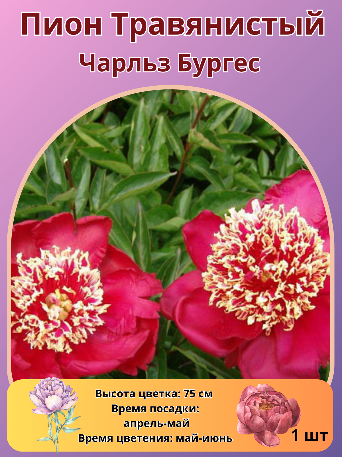 Ниже Вы можете прочитать отзывы на Пион травянистый Чарльз Бургес, многолетние цветы, ознакомится с подробными характеристиками, посмотреть интересные обзоры и фотографии на Пион травянистый Чарльз Бургес, многолетние цветы.