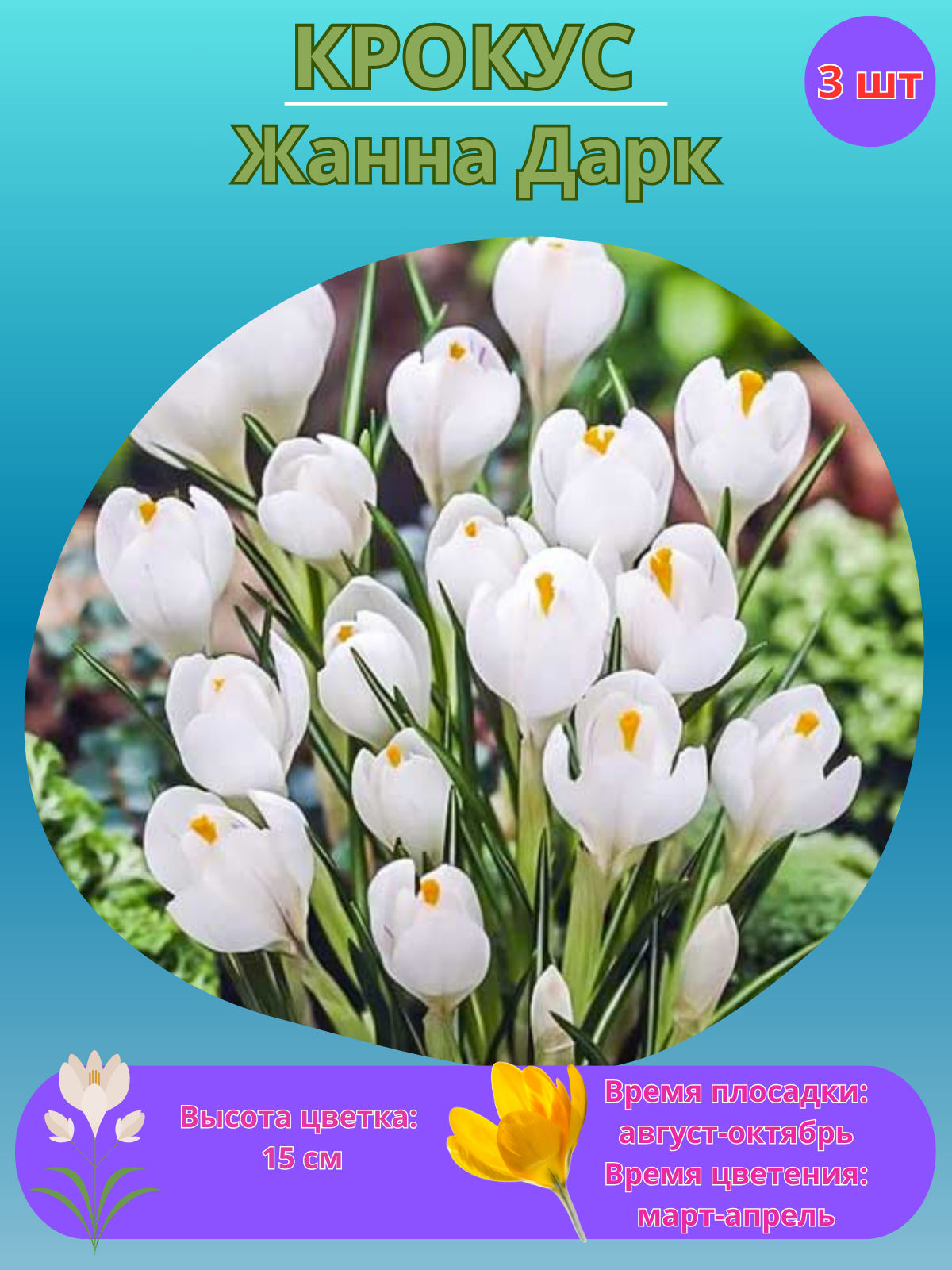 Купить Крокус Жанна Дарк, многолетнее луковичные цветы, луковицы 3 шт