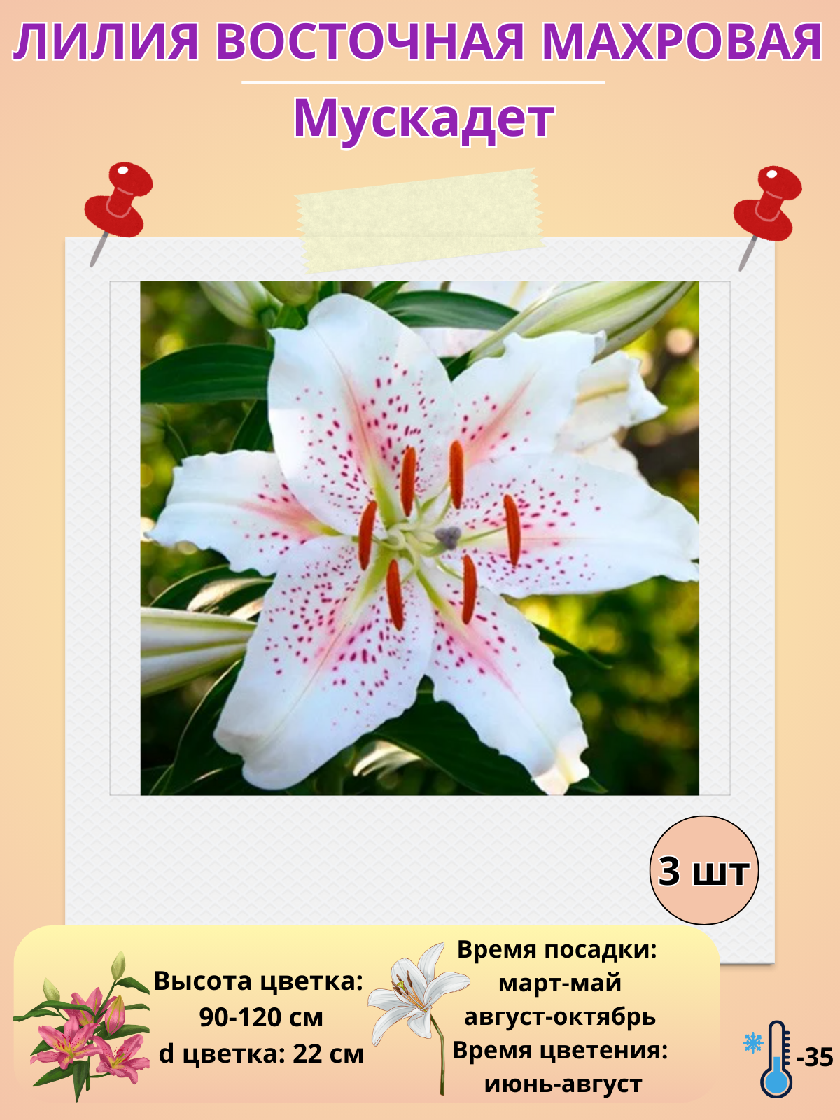Ниже Вы можете прочитать отзывы на Лилия Махровая, восточная Мускадет, многолетние цветы, ознакомится с подробными характеристиками, посмотреть интересные обзоры и фотографии на Лилия Махровая, восточная Мускадет, многолетние цветы.