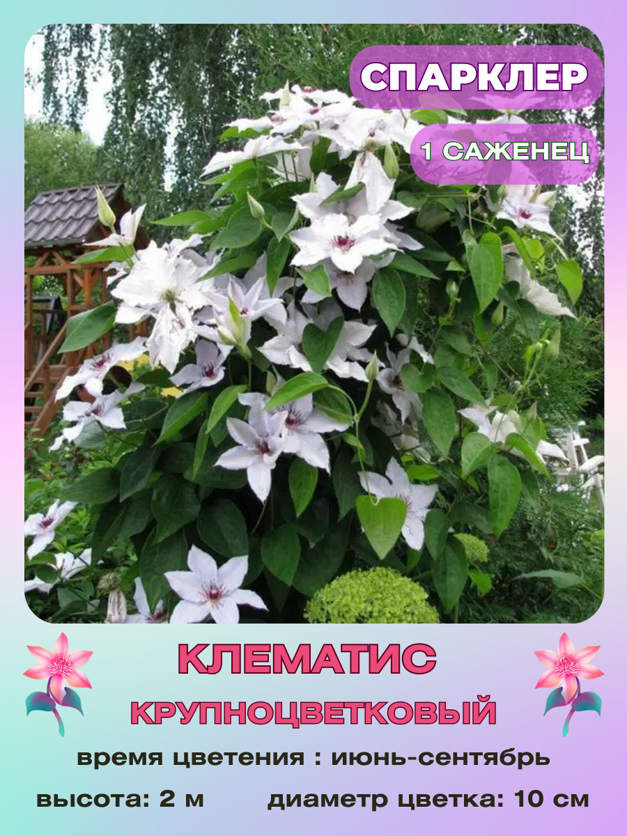 Ниже Вы можете прочитать отзывы на Клематис Спарклер, ознакомится с подробными характеристиками, посмотреть интересные обзоры и фотографии на Клематис Спарклер.