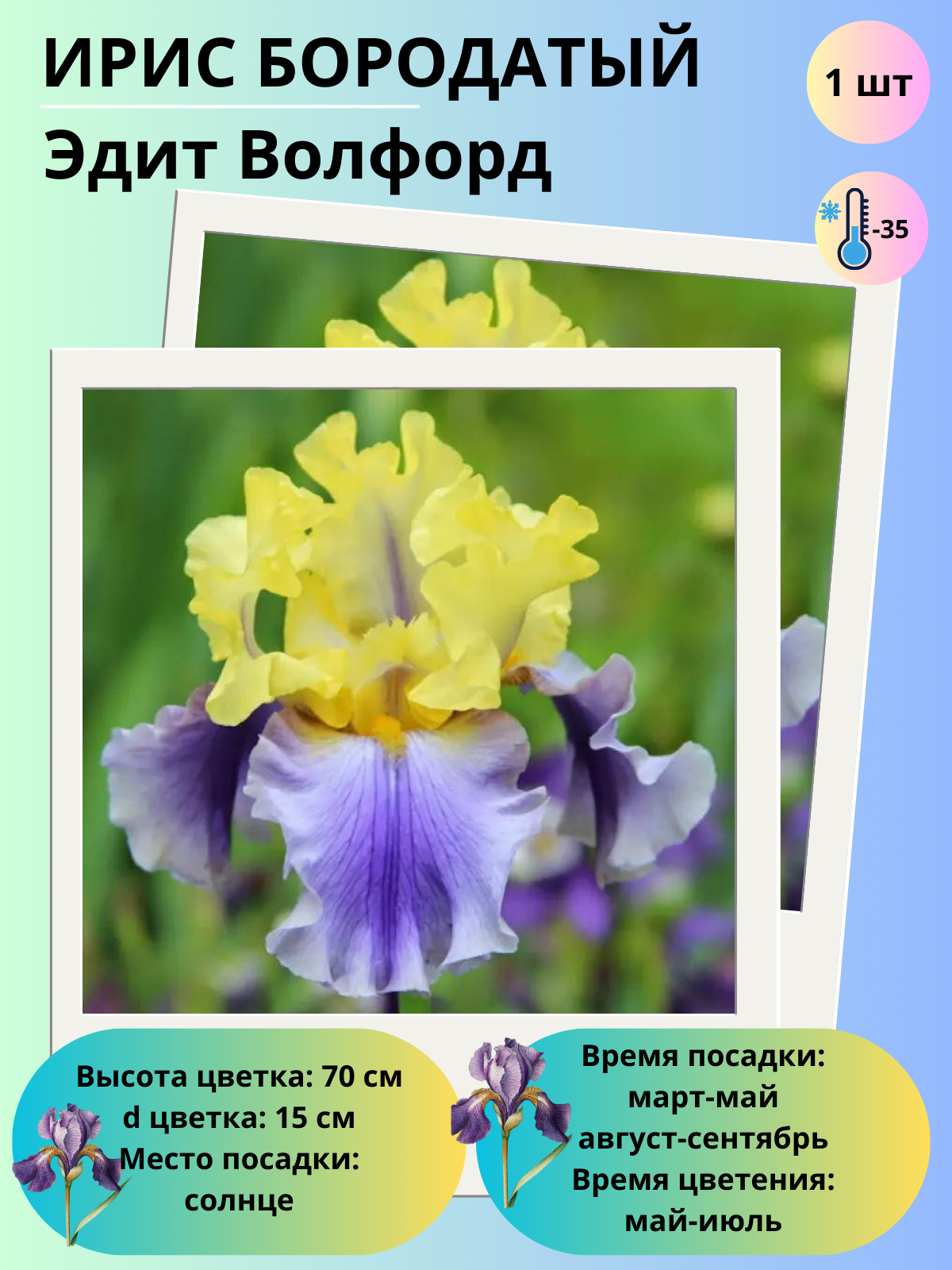 СохранитьИрис бородатый Эдит Волфорд, многолетние цветы, корень 1 шт интересное:
