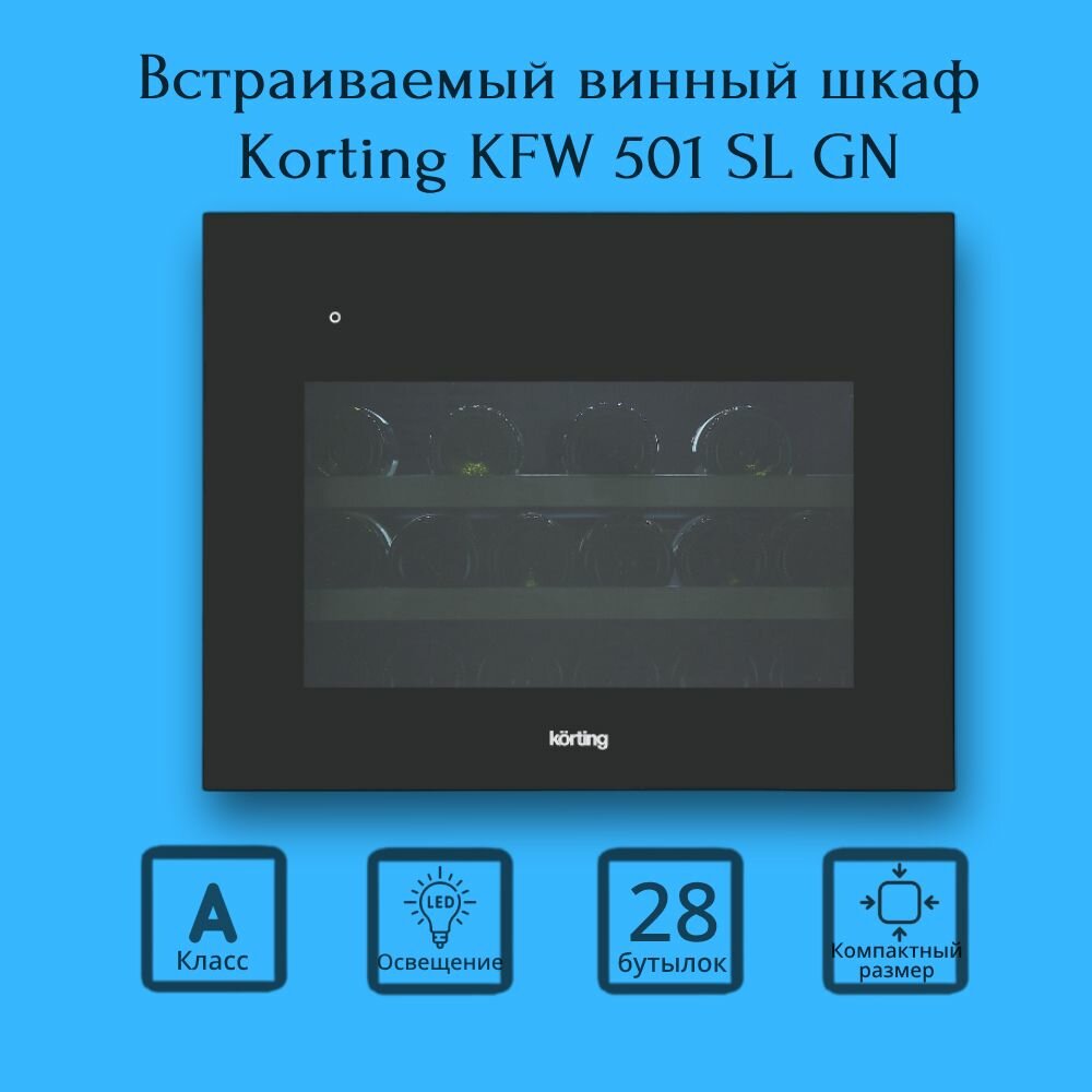 Винный шкаф встраиваемый KORTING KFW 501 SL GXN 62 л/28 бутылок, сенсорное управление