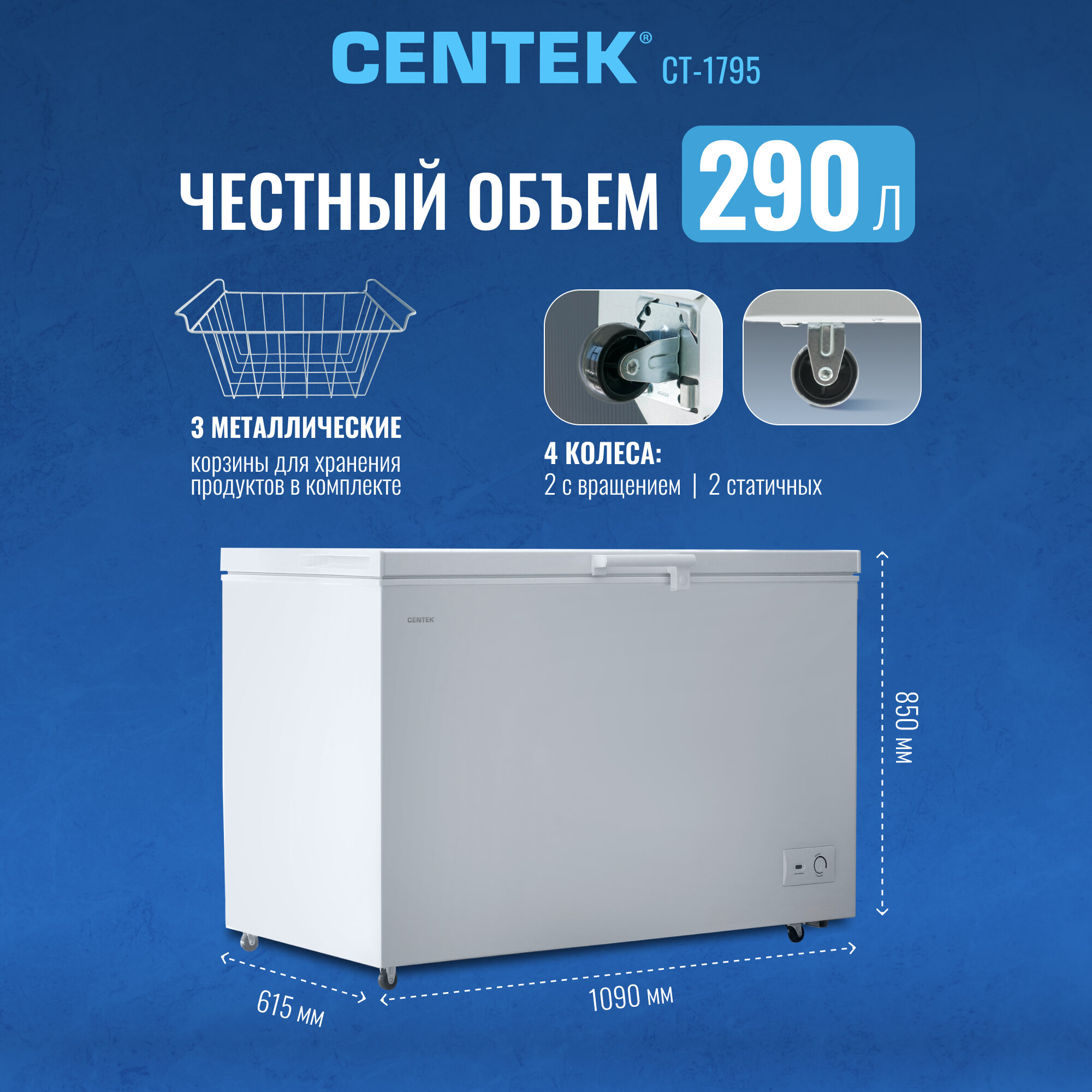 Морозильная камера для дома CENTEK CT-1795: 290л /2 в 1 ларь-холодильник/3 корзины/A/4 колеса