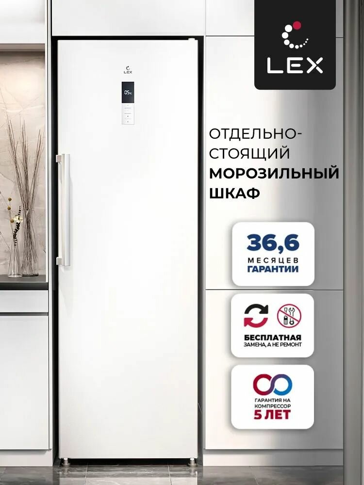 Морозильная камера Lex LFR 185.2WD вертикальная, No Frost, мощность замораживания 12 кг/сут, объем 265 л, белая интересное: