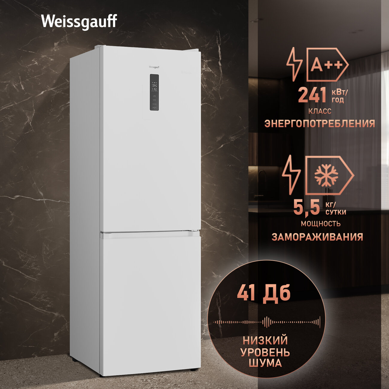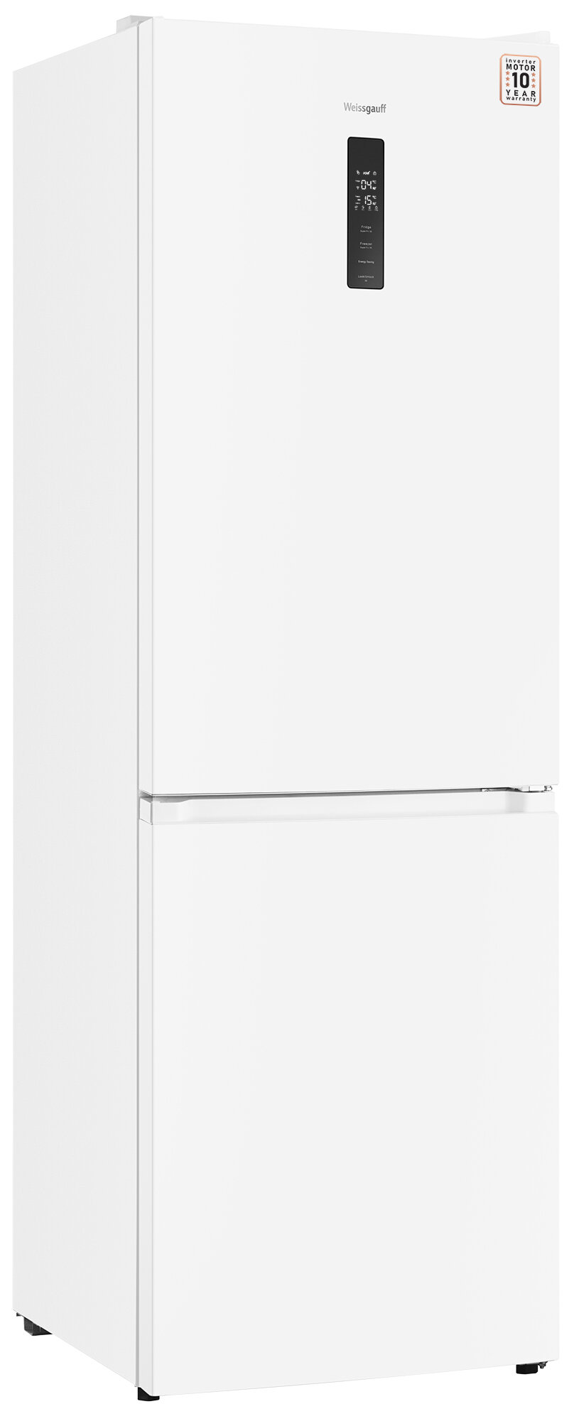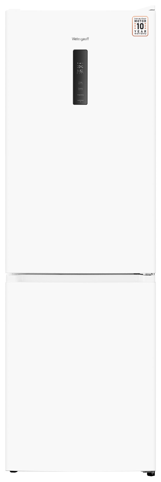 Отдельностоящий холодильник с инвертором Weissgauff WRK 185 Total NoFrost Inverter White двухкамерный шириной 60 см, 3 года гарантии, Тихий 40дБ, Высота 185см, Дисплей, Зона свежести, Супер заморозка 15кг сутки, Перенавешиваемая дверь