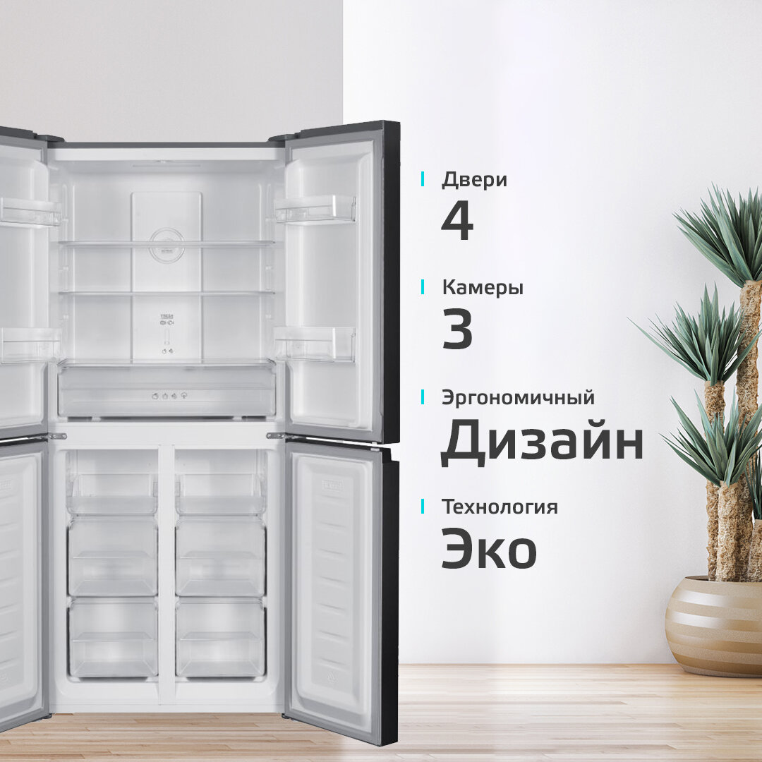 СохранитьХолодильник трехкамерный 404 л / Total No Frost / А ++ / инверторный, Harper RH6966BI, black glass интересное: