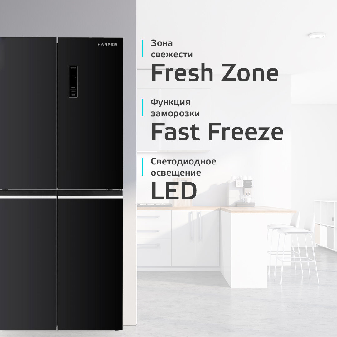 Купить Холодильник трехкамерный 404 л / Total No Frost / А ++ / инверторный, Harper RH6966BI, black glass