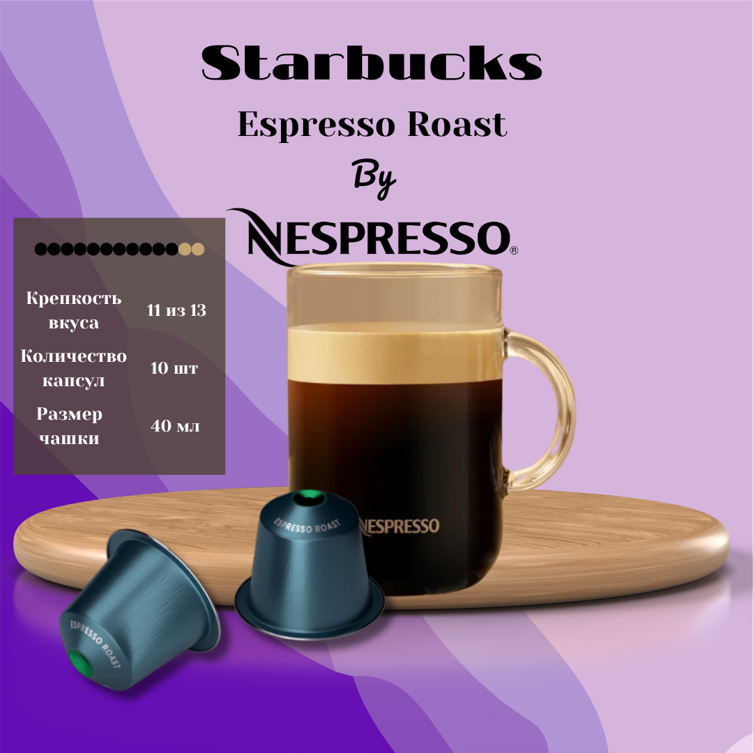 Кофе в капсулах Nespresso Starbucks Espresso Roast, 10шт, тёмная обжарка, 57г