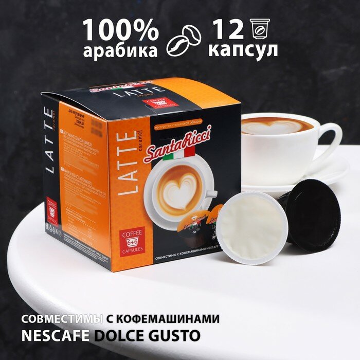 Купить Кофе в капсулах Santa Ricci молотый, капсулы dolce gusto, для кофемашины дольче густо, латте, 12 шт