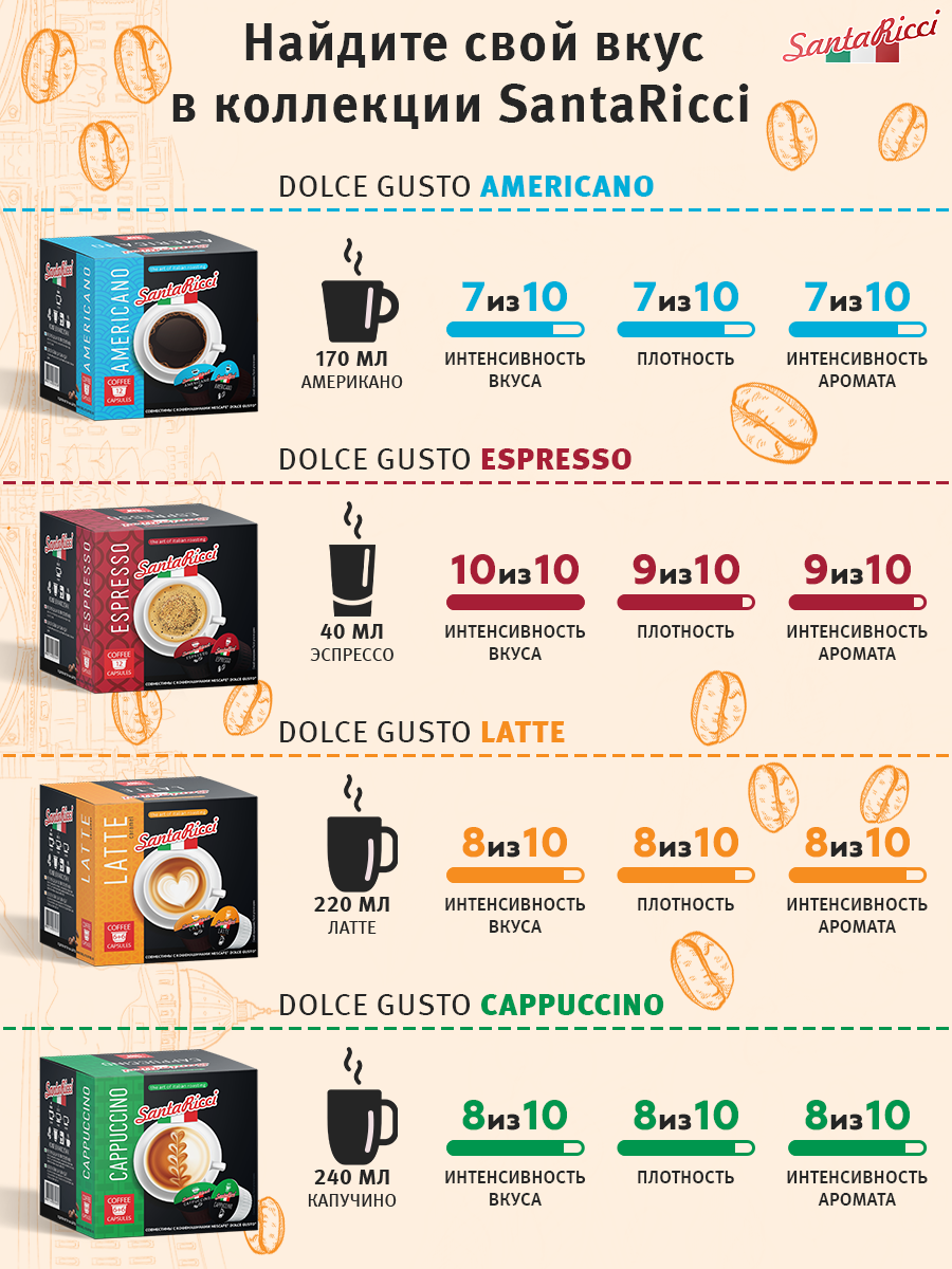 Кофе в капсулах Santa Ricci молотый, капсулы dolce gusto, для кофемашины дольче густо, латте, 12 шт интересное: