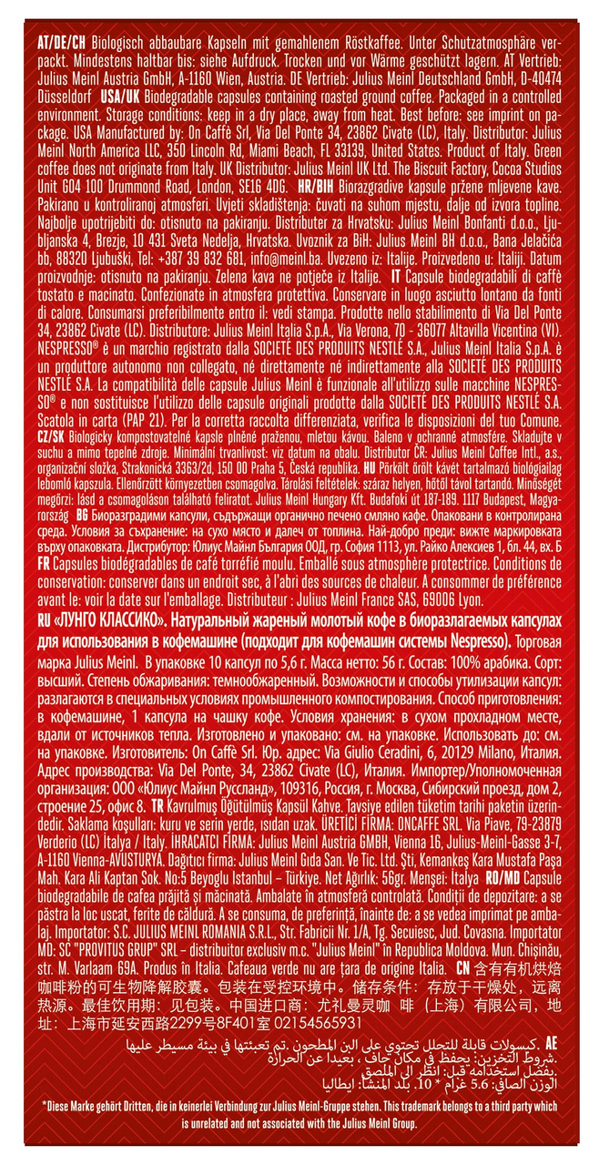 Кофе в капсулах JULIUS MEINL "Lungo Classico" для кофемашин Nespresso, 10 порций, италия, 94031 интересное: