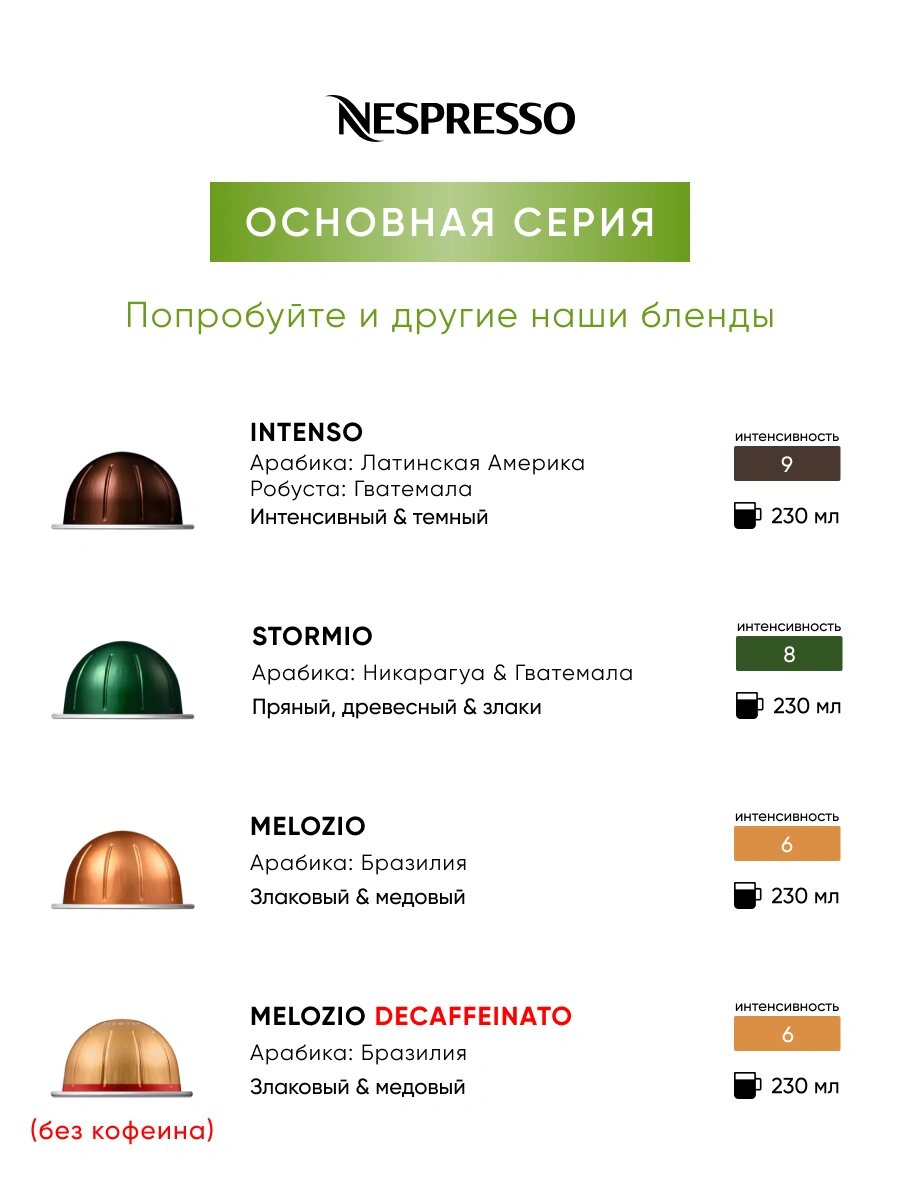 Кофе Nespresso Vertuo Melozio Decaffeinato 10 шт, для капсульной кофемашины Vertuo