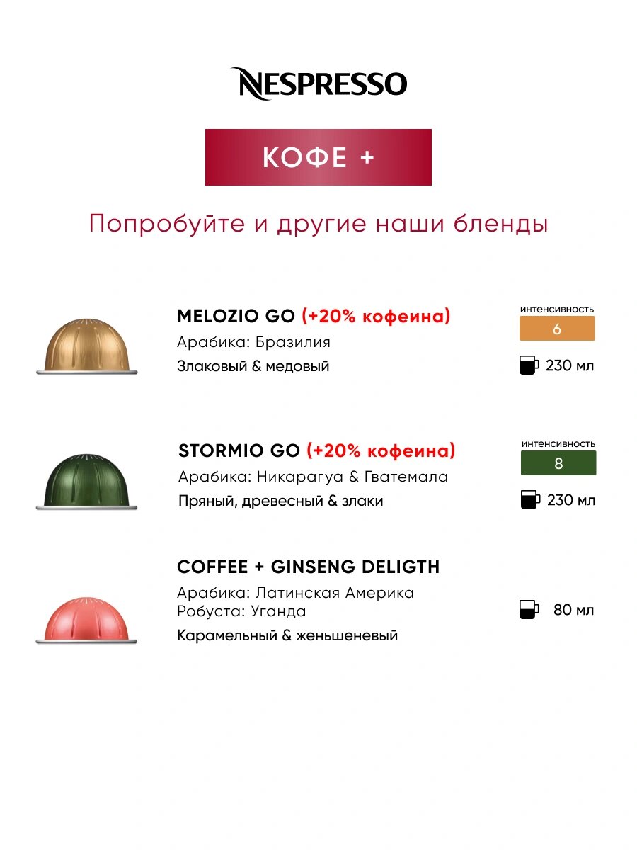 Кофе в капсулах Nespresso Vertuo Ginseng Delight , 80 ml, 1 упаковка 10 капсул