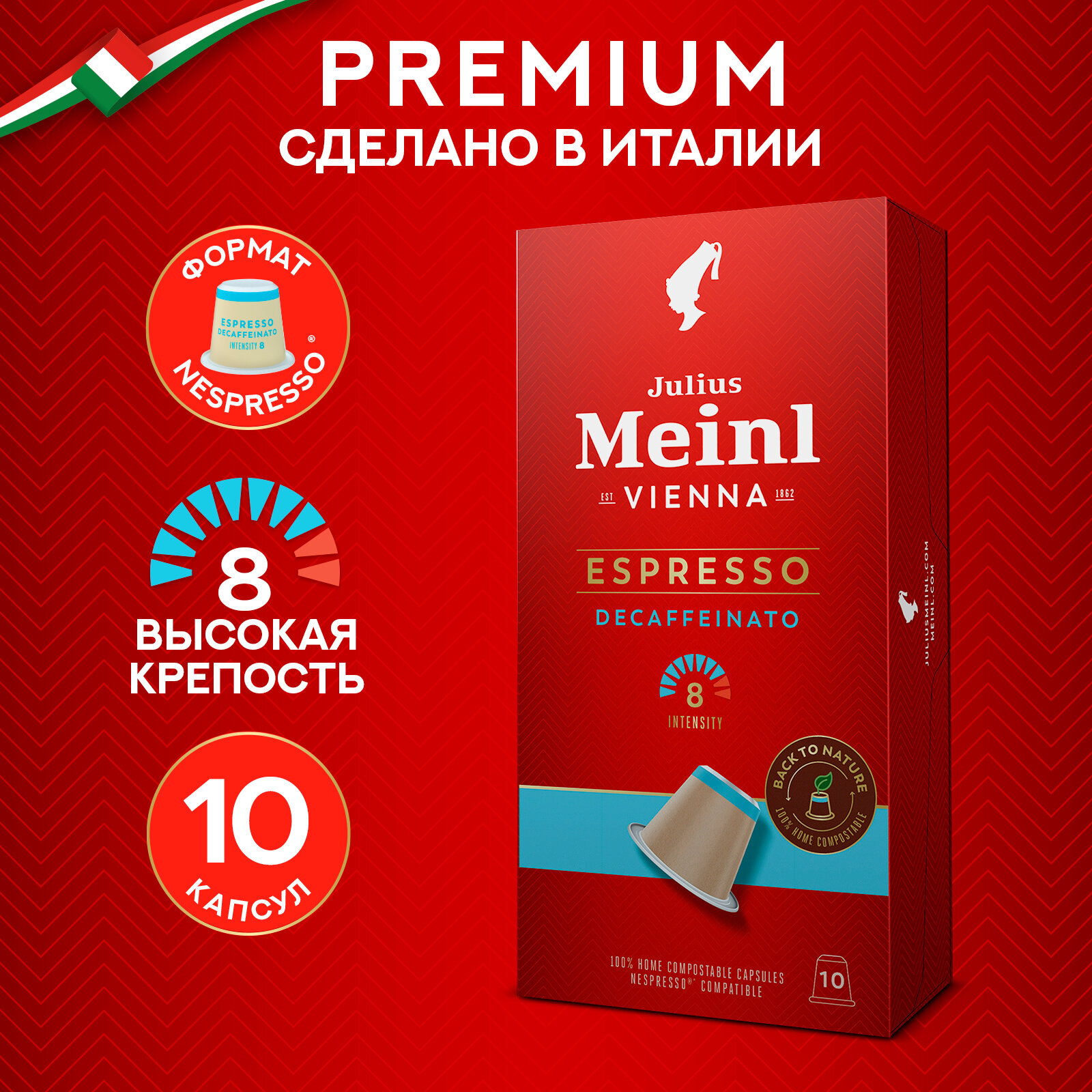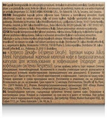 Кофе капсулы Эспрессо Декаф без кофеина, формат Nespresso Julius Meinl, 10 шт