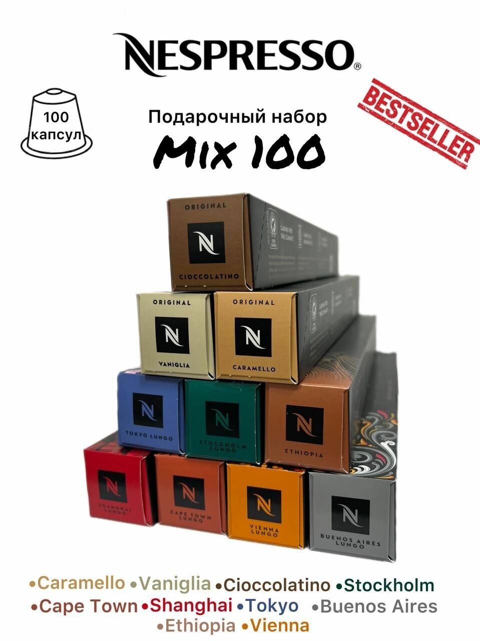 Набор кофе в капсулах Nespresso Original, 10 упаковок (100 капсул), 10 вкусов