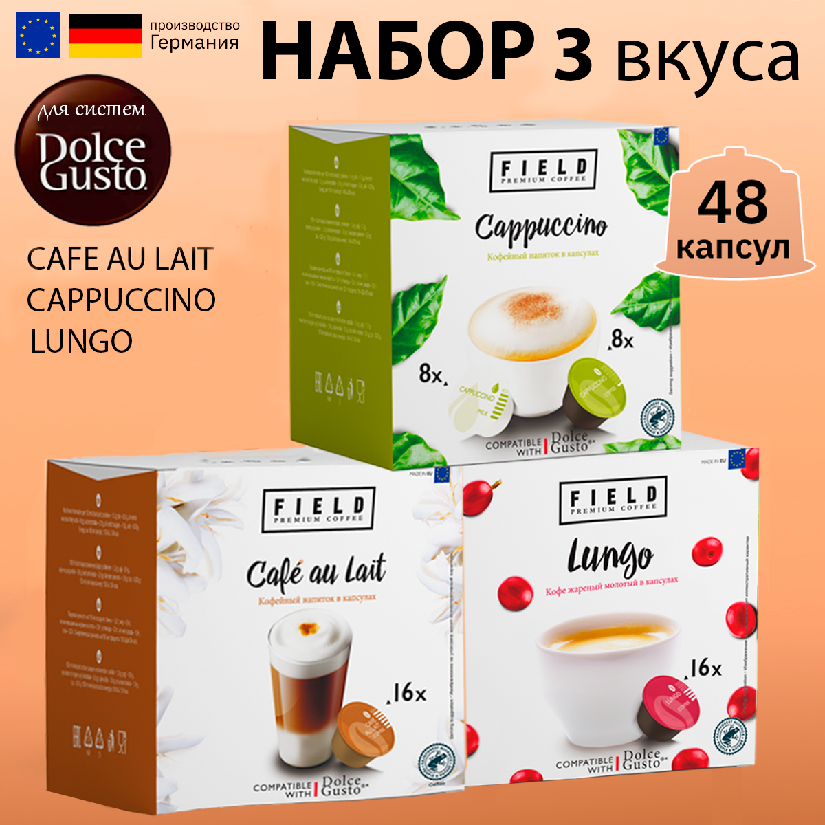 Кофе капсулы Field Dolce Gusto Cappuccino Сafe au Lait Lungo набор 48шт