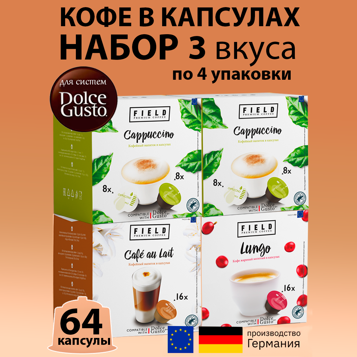 Кофе капсулы Field Dolce Gusto Cafe au Lait Cappuccino Lungo набор 64шт