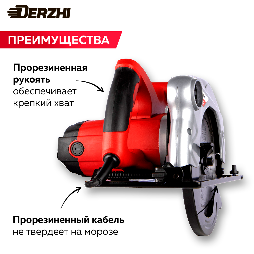 Дисковая пила (циркулярная) DERZHI 1600 Вт (190х20мм, 67 мм пропил, 4700 оборотов/мин)