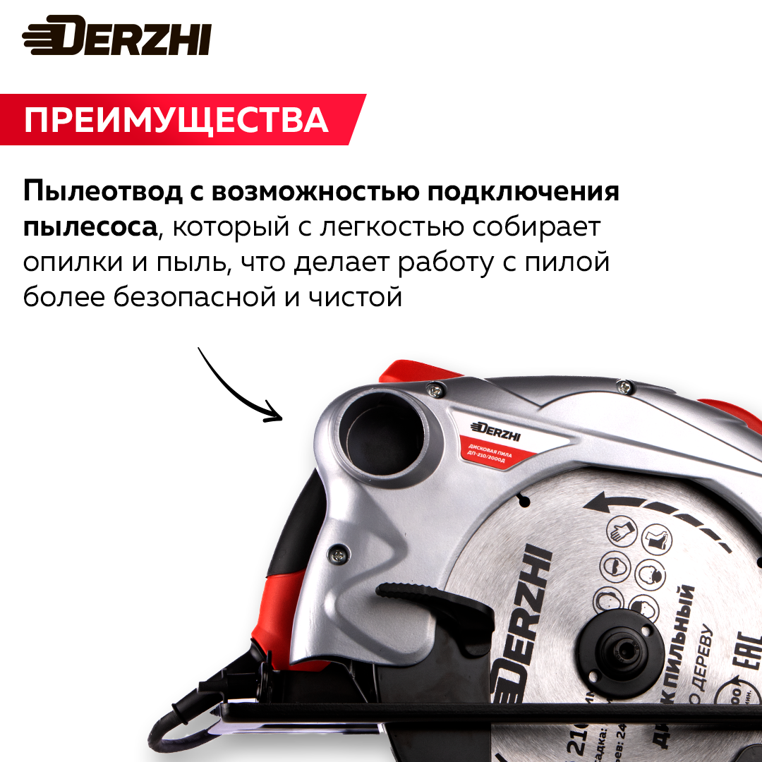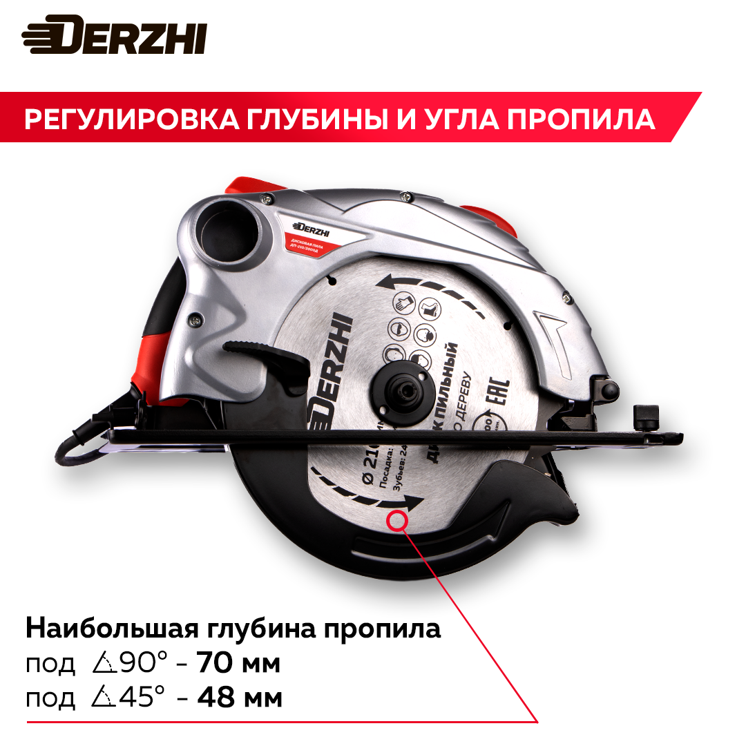 Дисковая пила (циркулярная) DERZHI 2000Вт (210х20мм, 70 мм пропил, 4000 оборотов/мин) интересное: