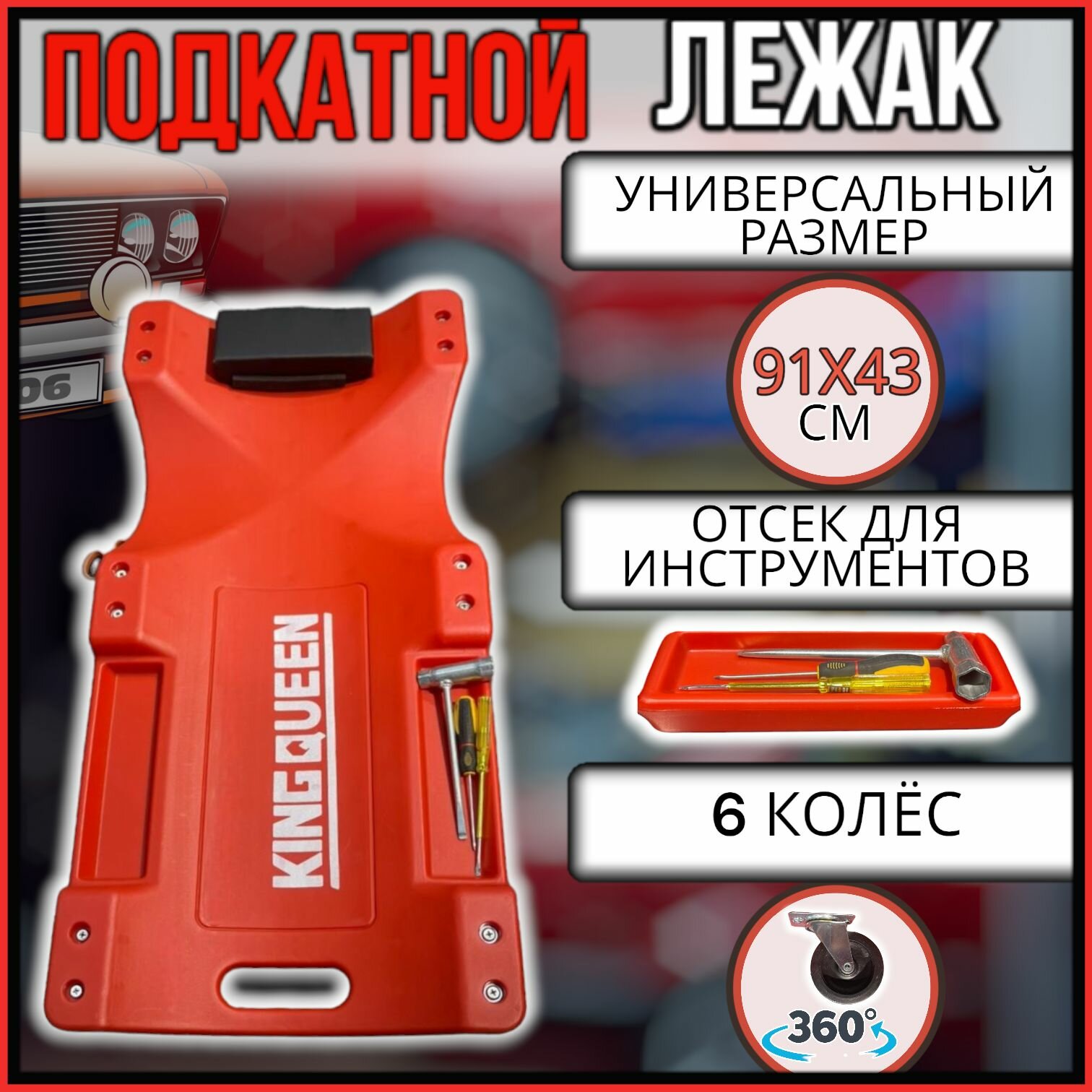 Лежак подкатной "KINGQUEEN"/ Тележка под машину / Лежанка для ремонта интересное: