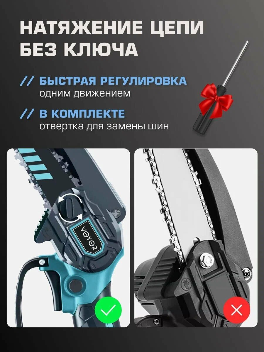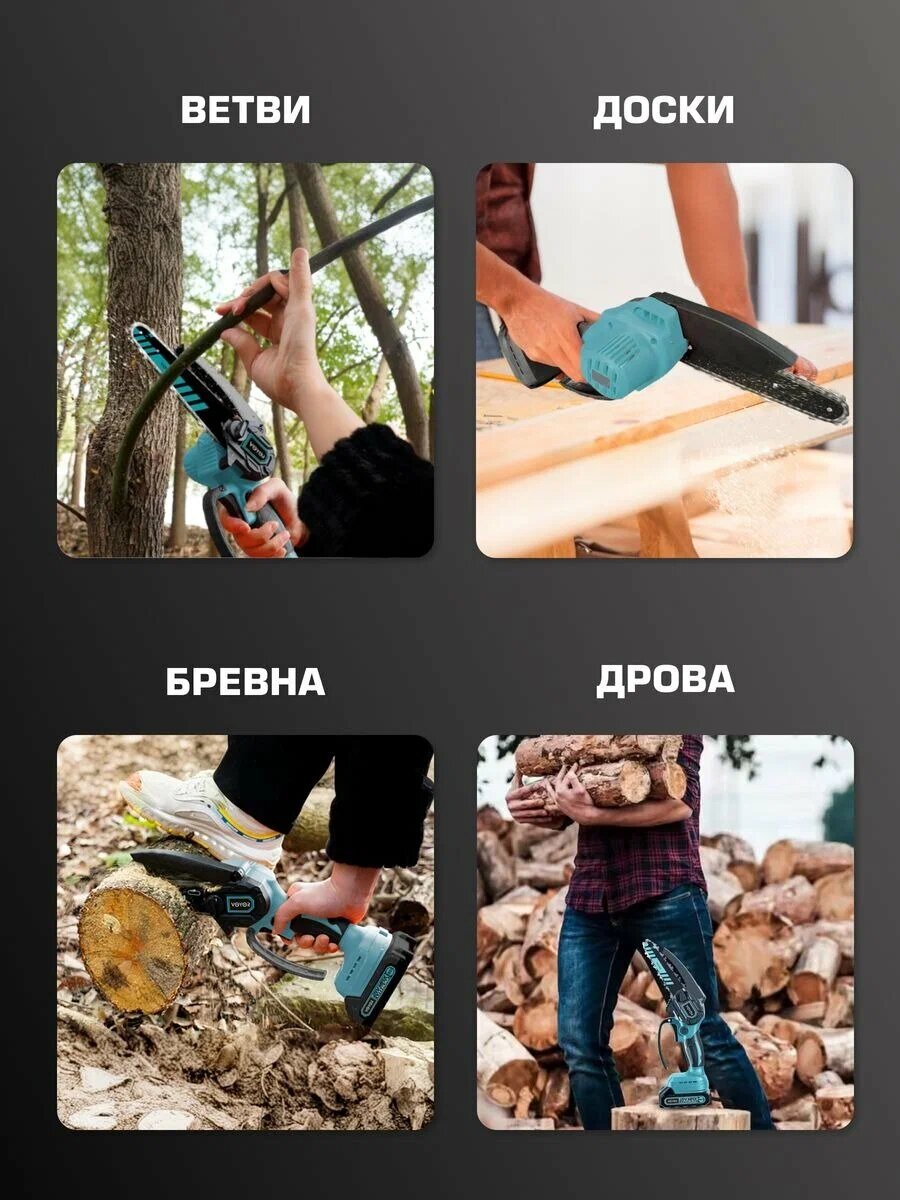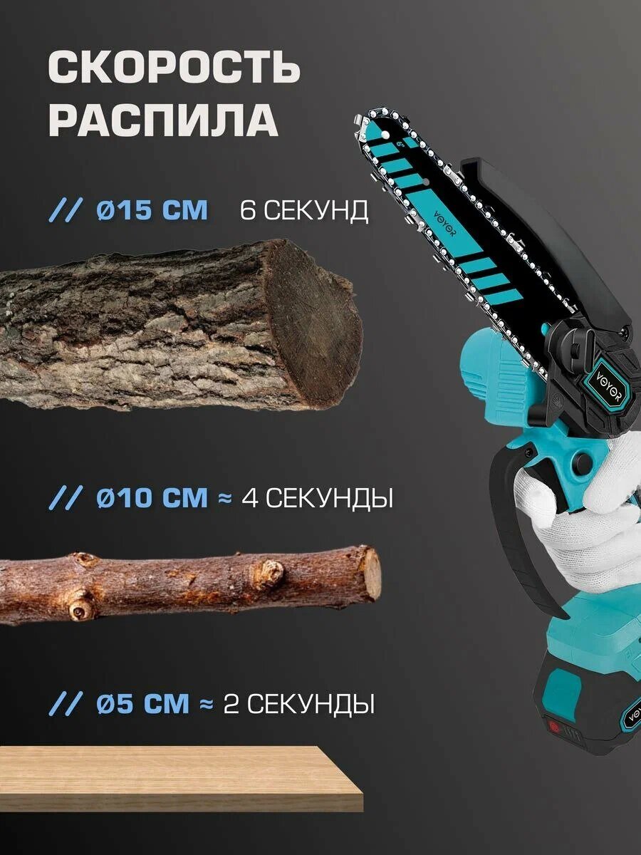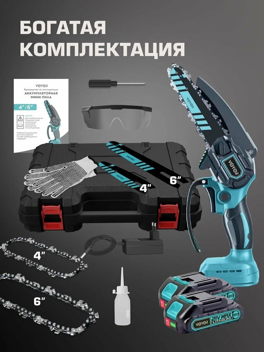 | Комплект поставки | В комплекте поставляются пильные шины диаметром 4 и 6 дюймов, защитные перчатки и масло, а также другие аксессуары, необходимые в работе. |