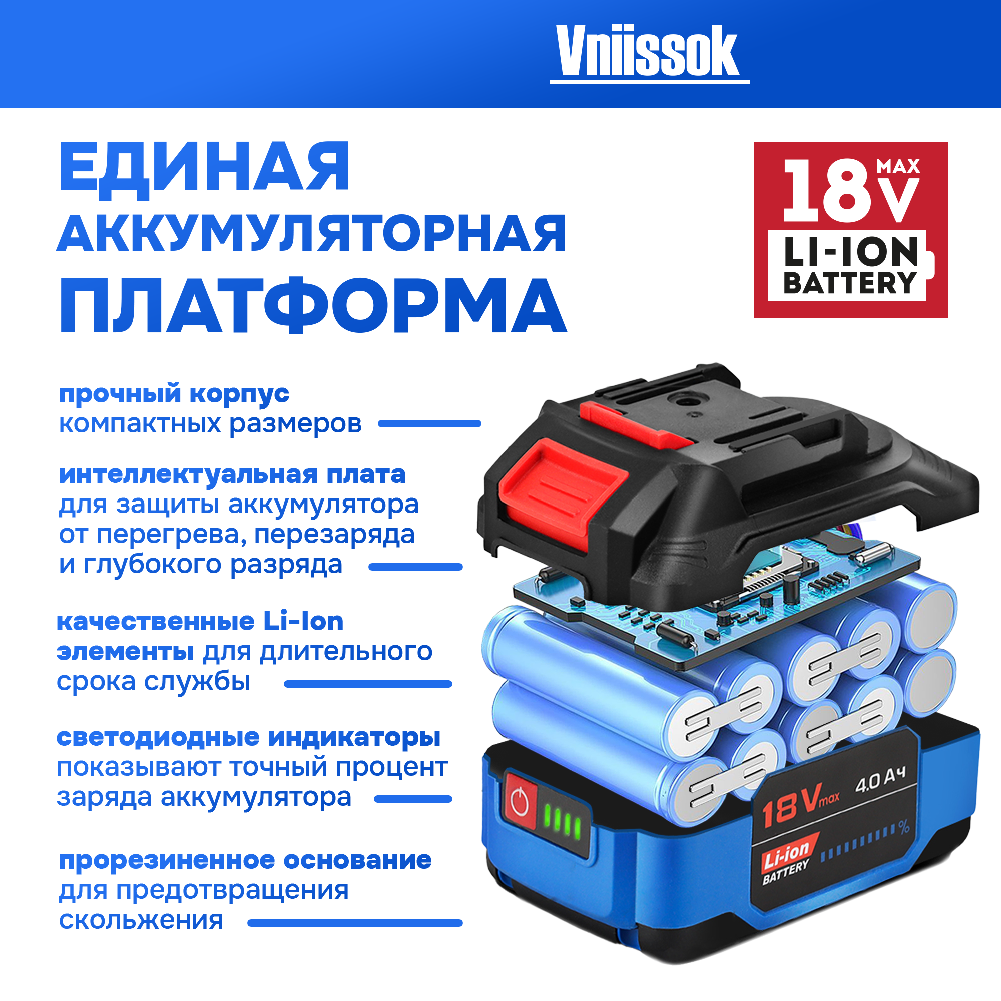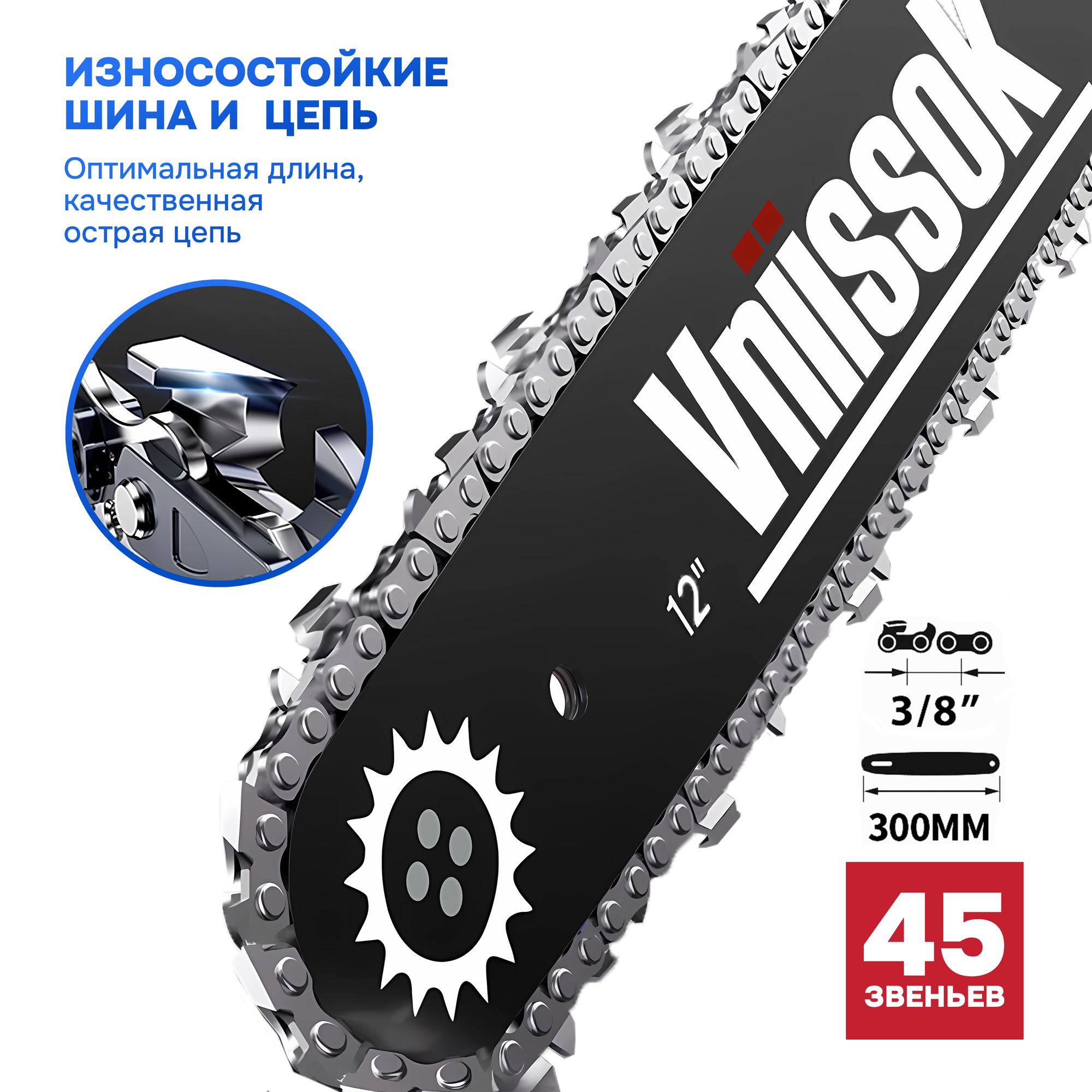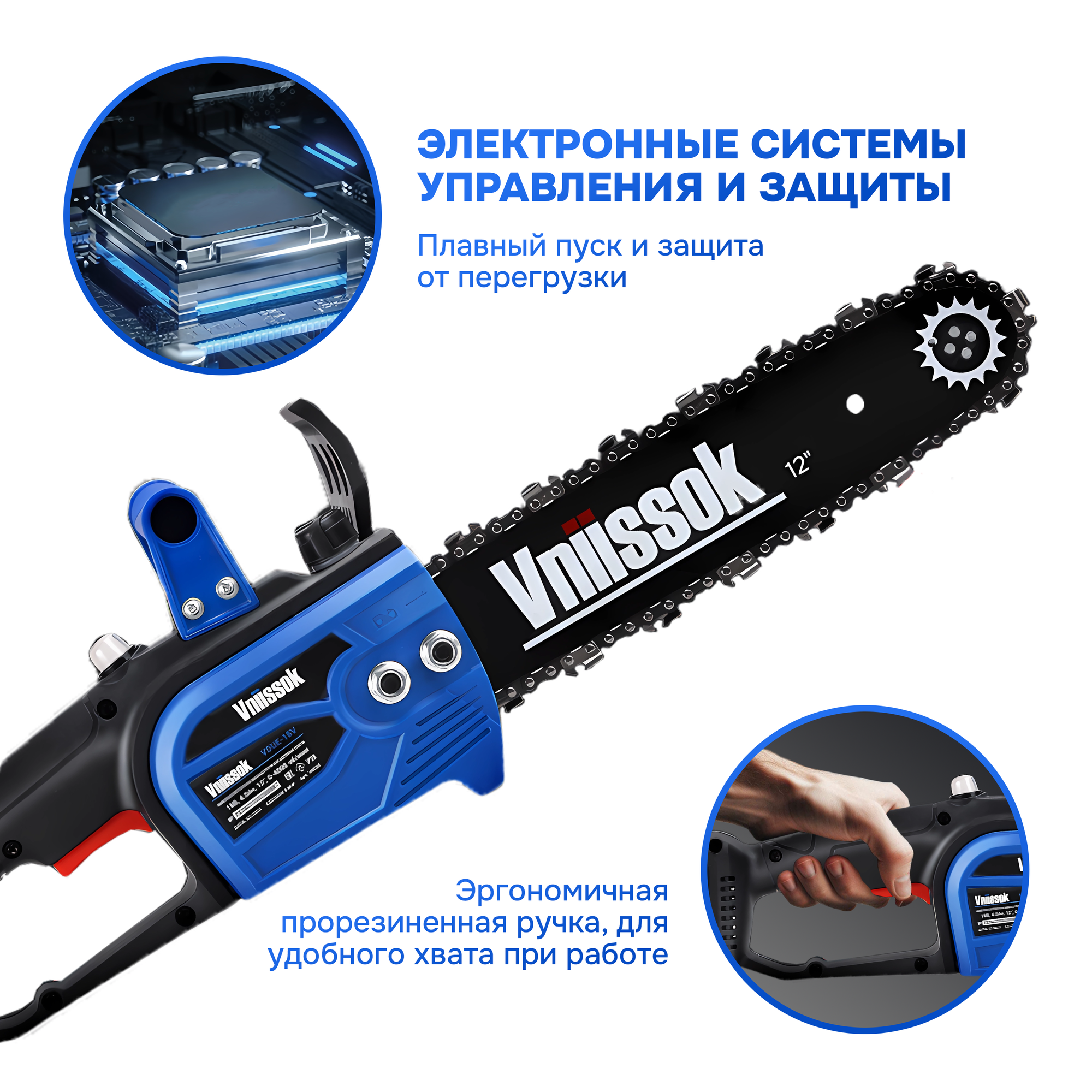 Аккумуляторная бесщеточная цепная пила VNIISSOK VDUE-18V (18В,Li-ion-1шт,4.0Ач,12",З/У,в коробке) интересное:
