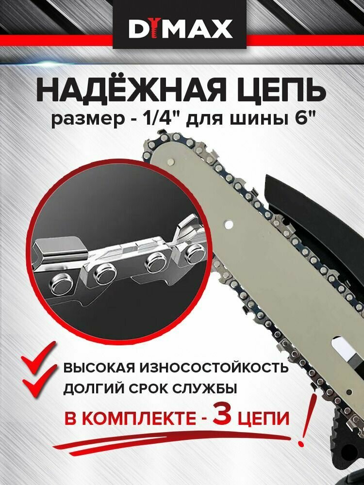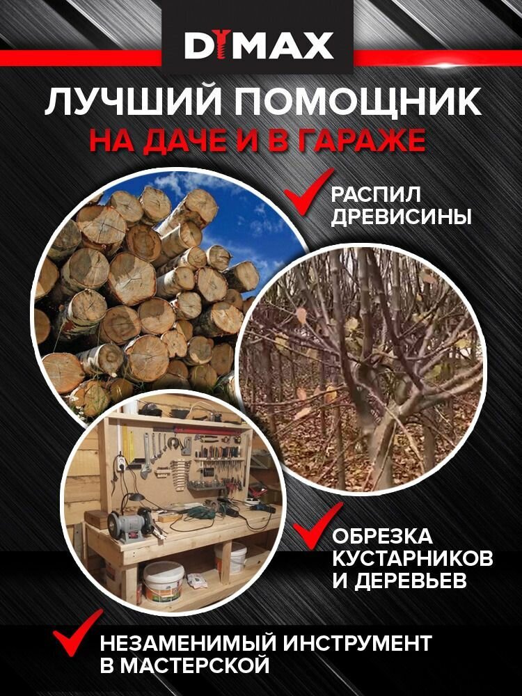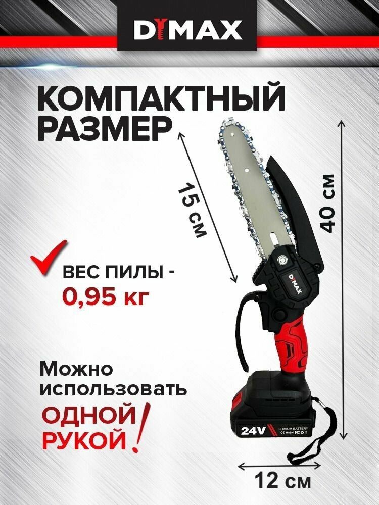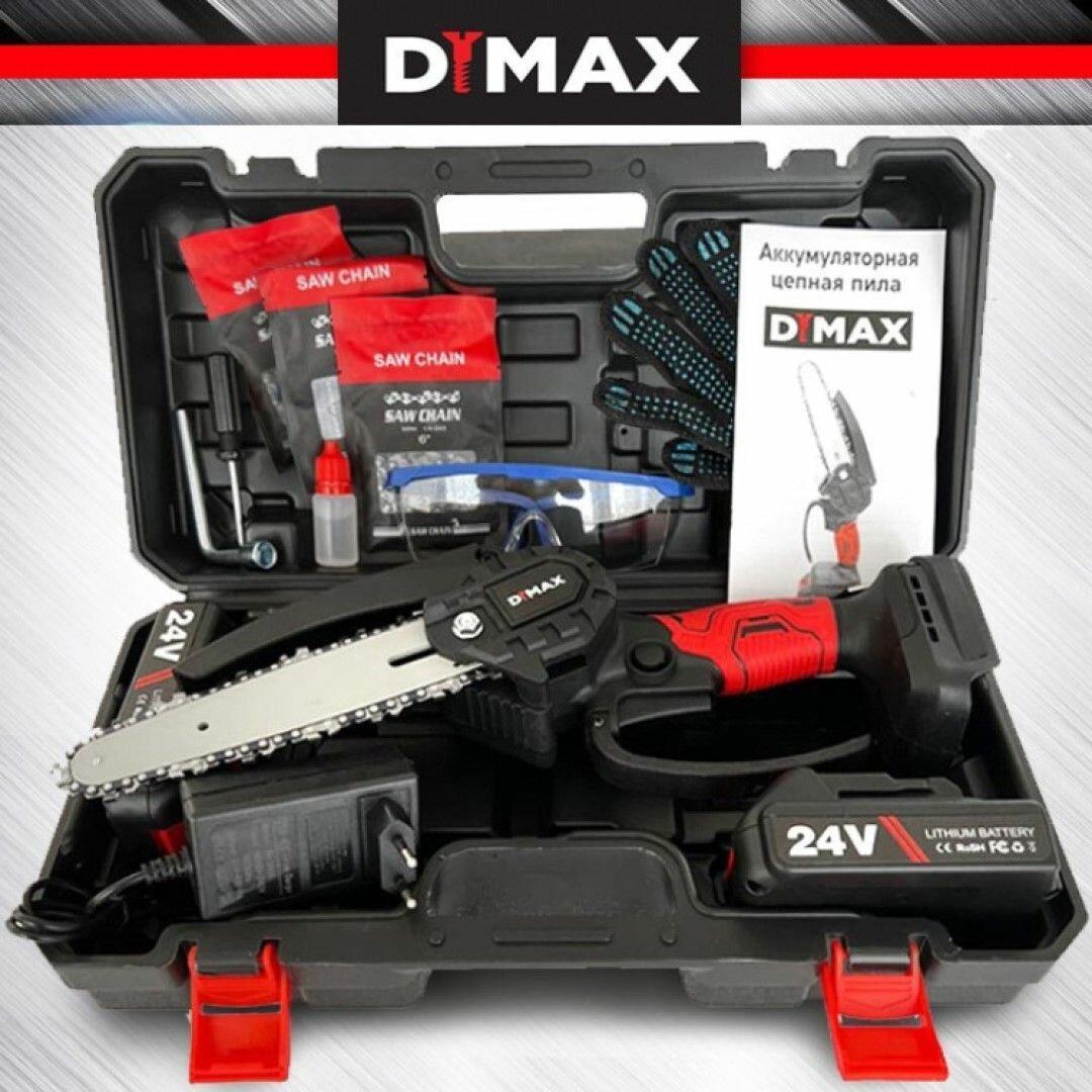 Пила аккумуляторная цепная 2 аккумулятора 21 В, 3 цепи Dymax DMXS6 Li, интересное: