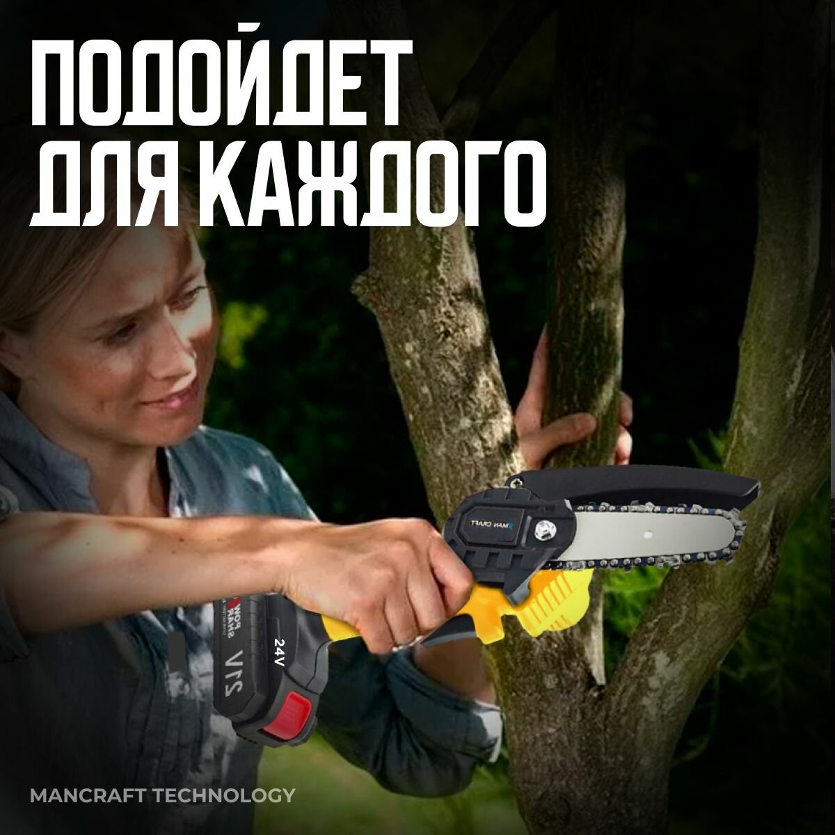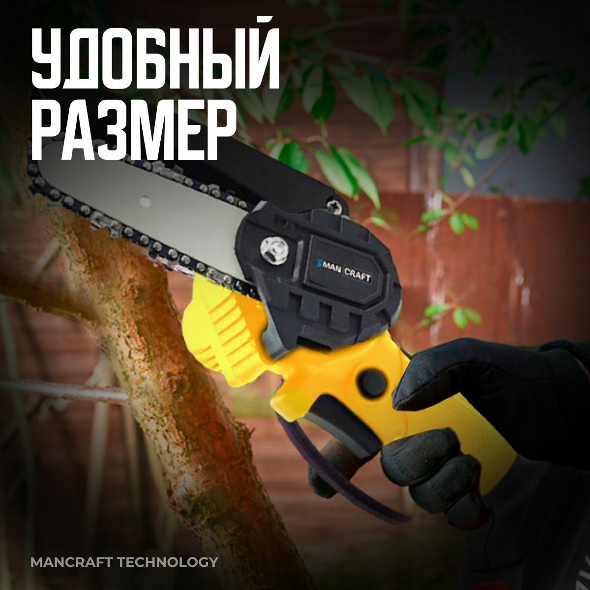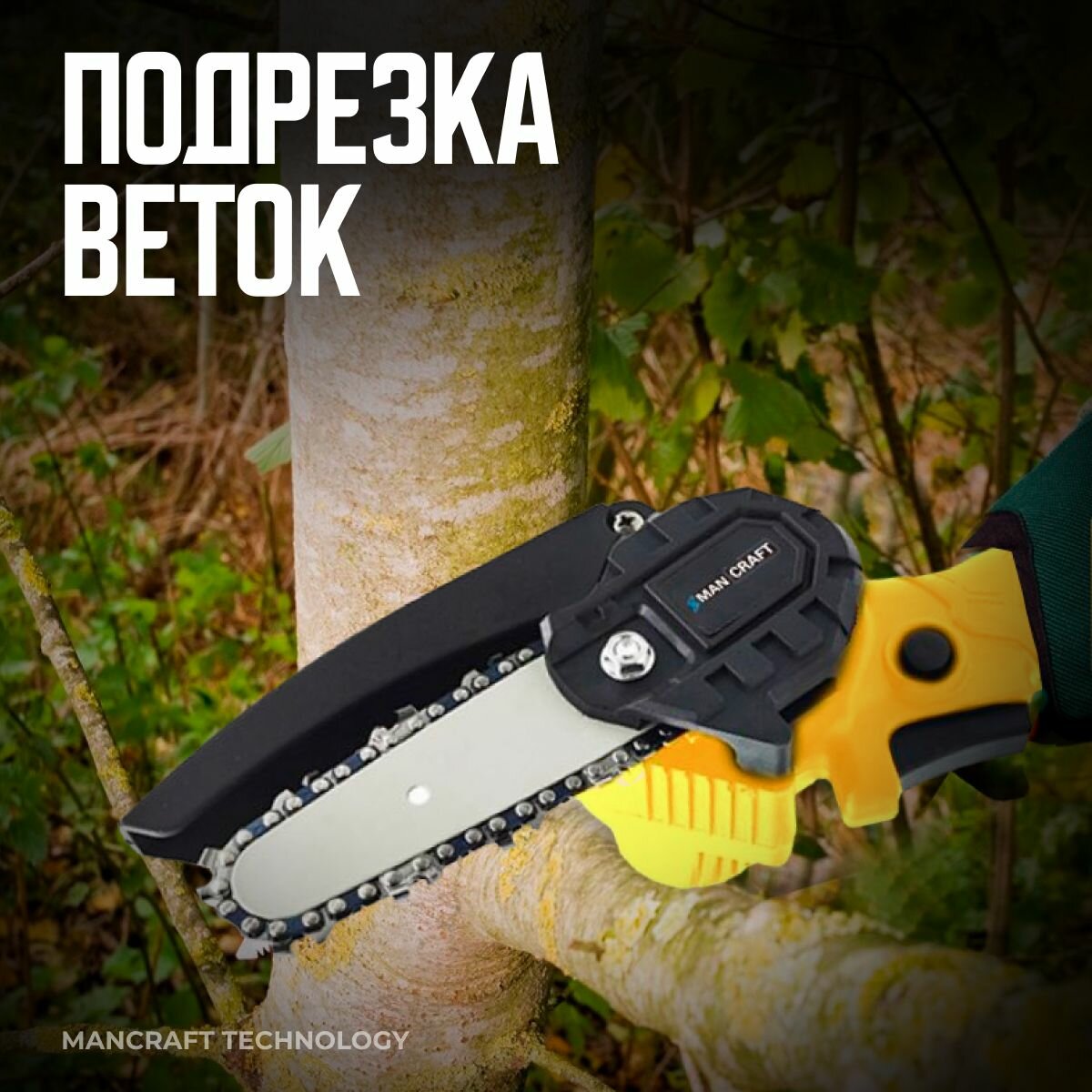 Электропила Мини пила аккумуляторная цепная садовая MANCRAFT 15 см + 10 см, 2 цепи, 2 акк интересное: