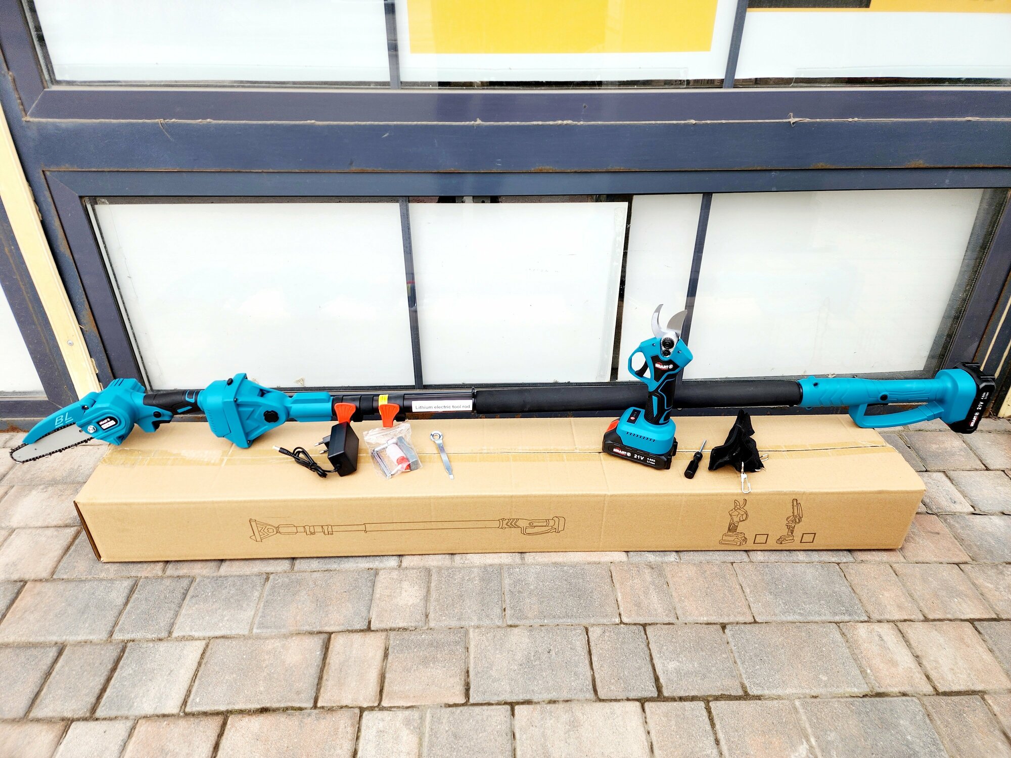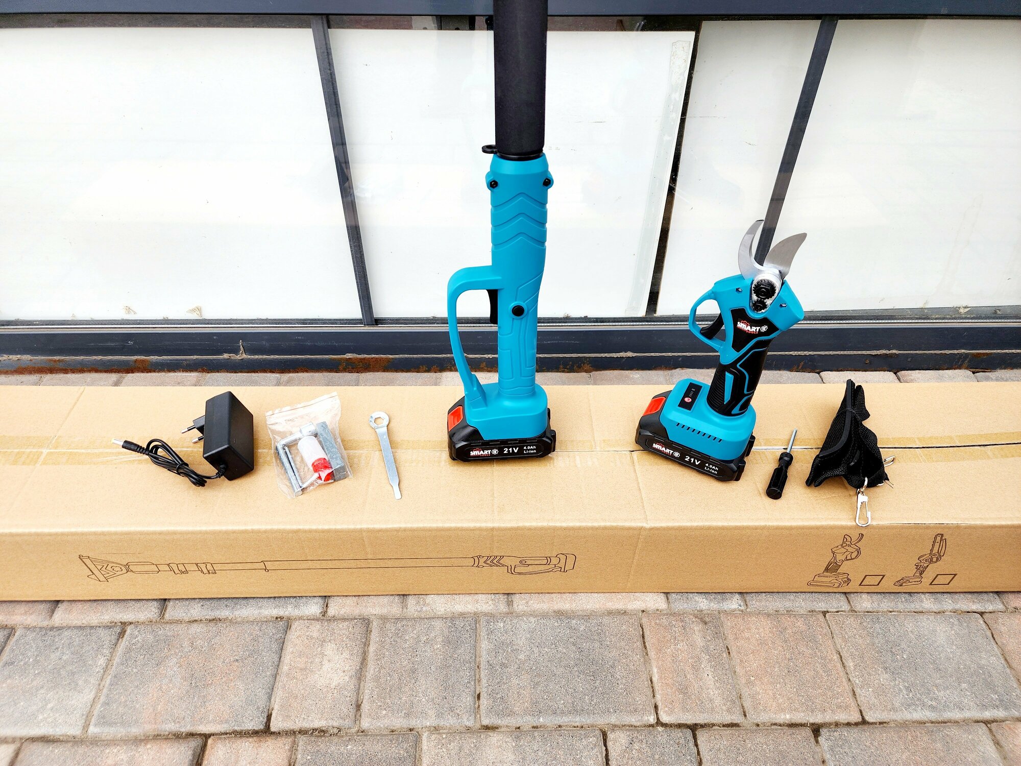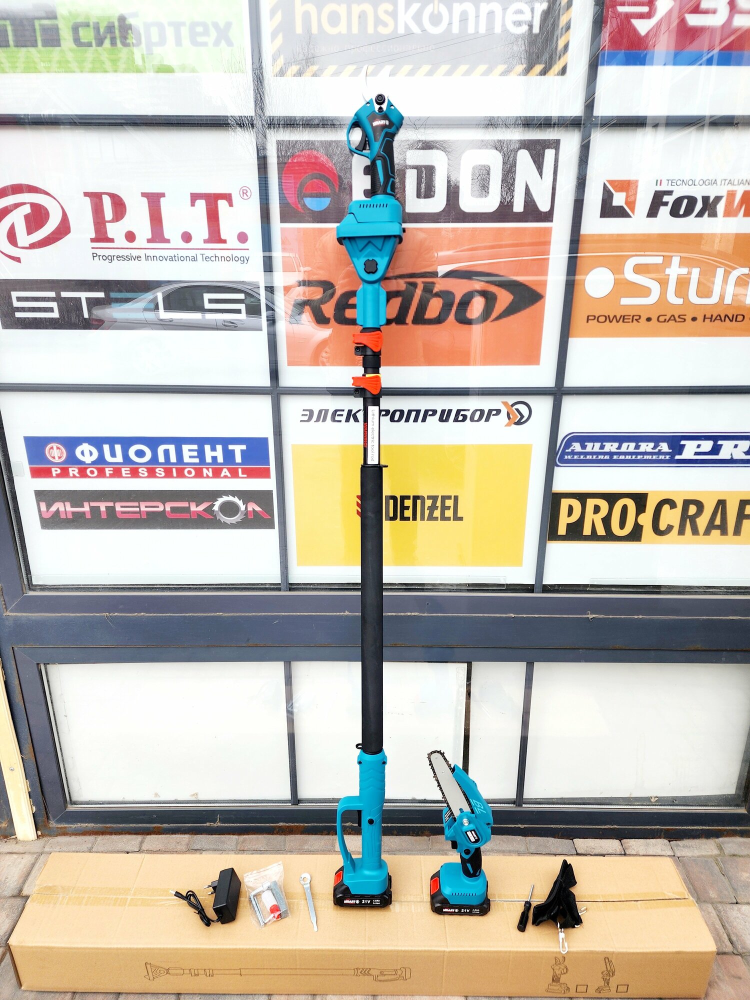 | Комплект поставки | Аккумуляторный секатор; аккумуляторная пини-пила цепная; штанга-телескопическая; аккумулятор 2шт; набор оснастки; коробка; зарядное устройство |
