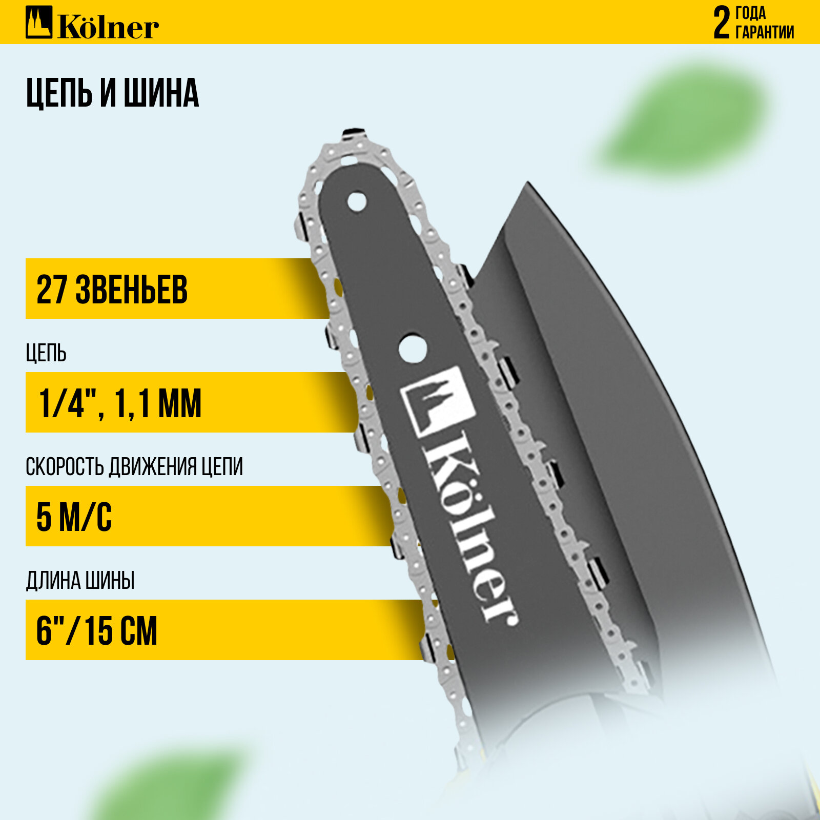 Аккумуляторная цепная пила Kolner KCS 18-15-2K