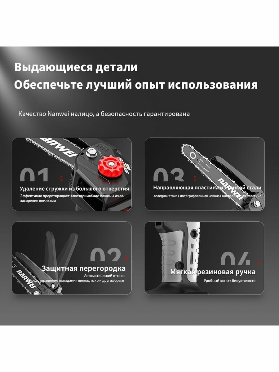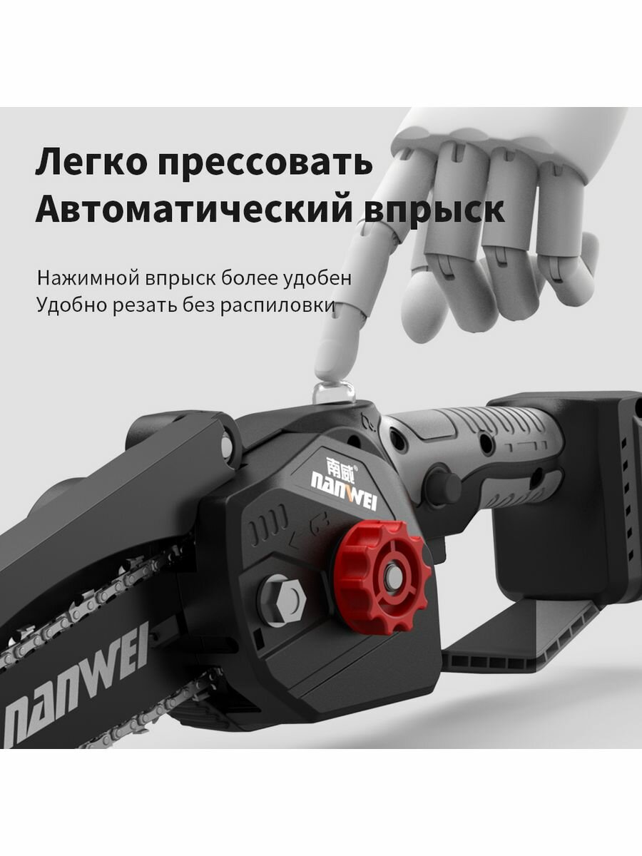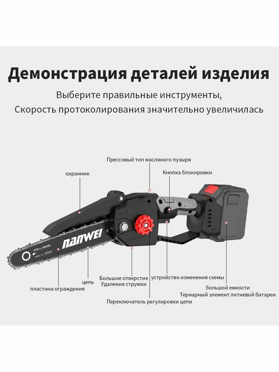 NANWEI 8" пила аккумуляторная цепная 21В беспроводной бензопила 6000r/min бесщёточный двигатель интересное: