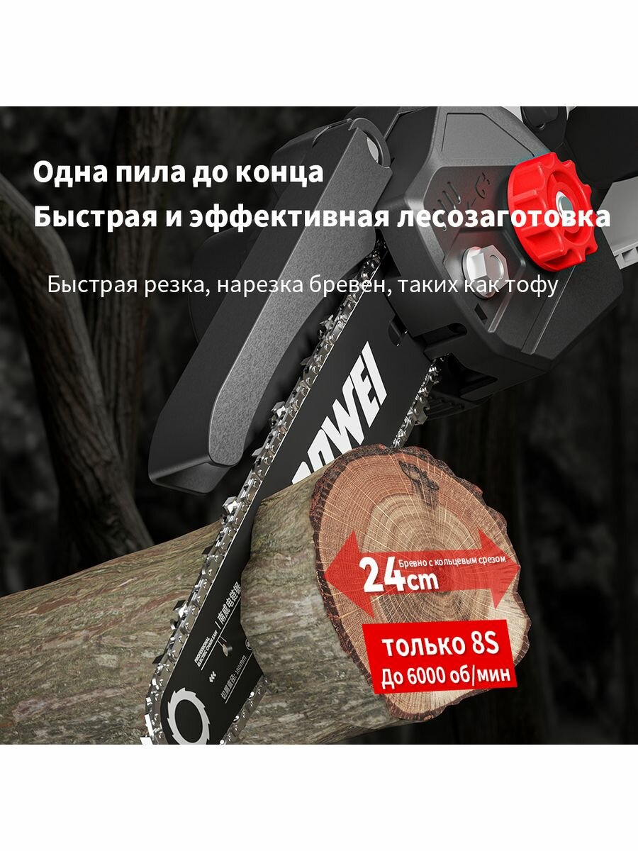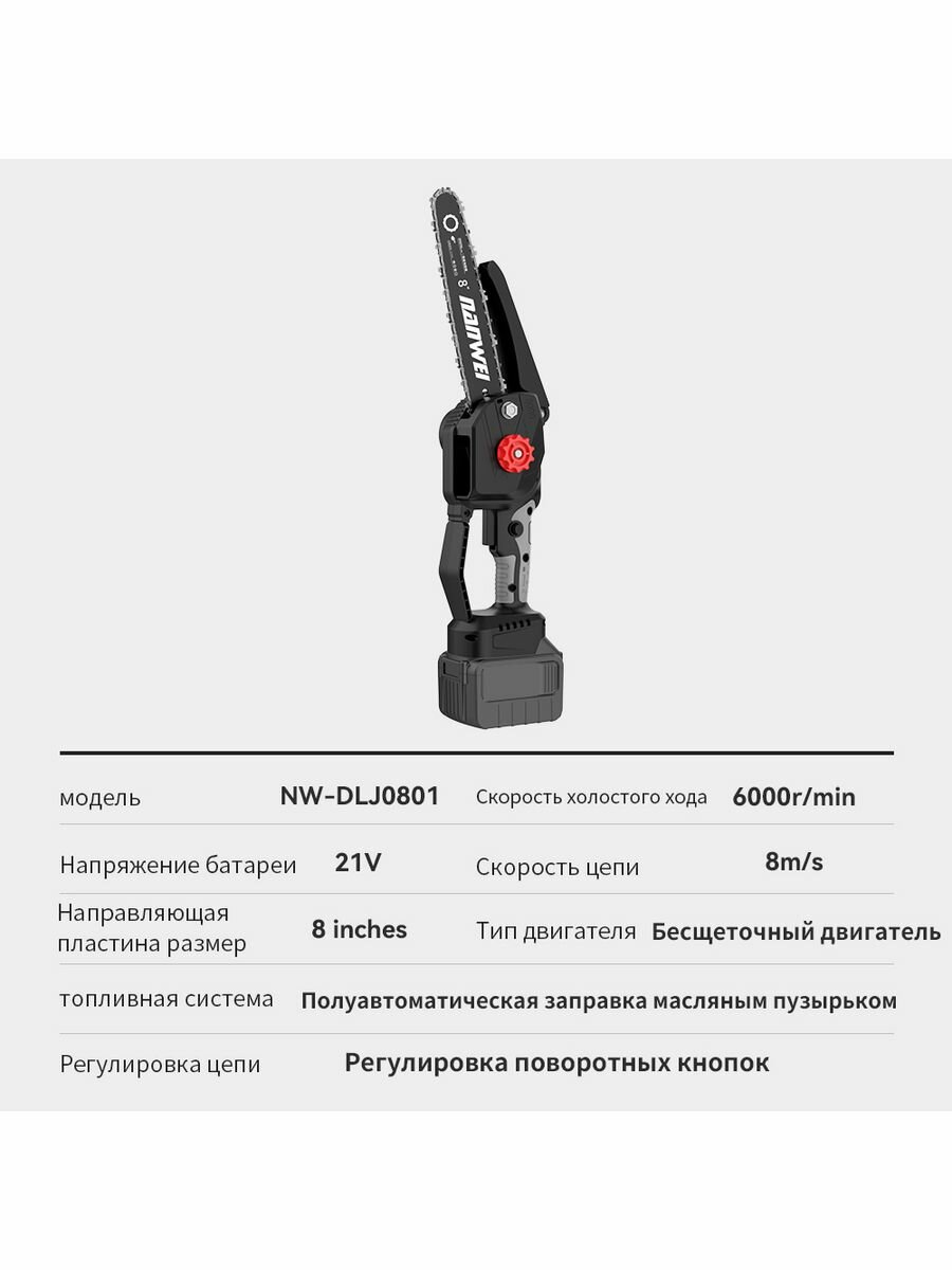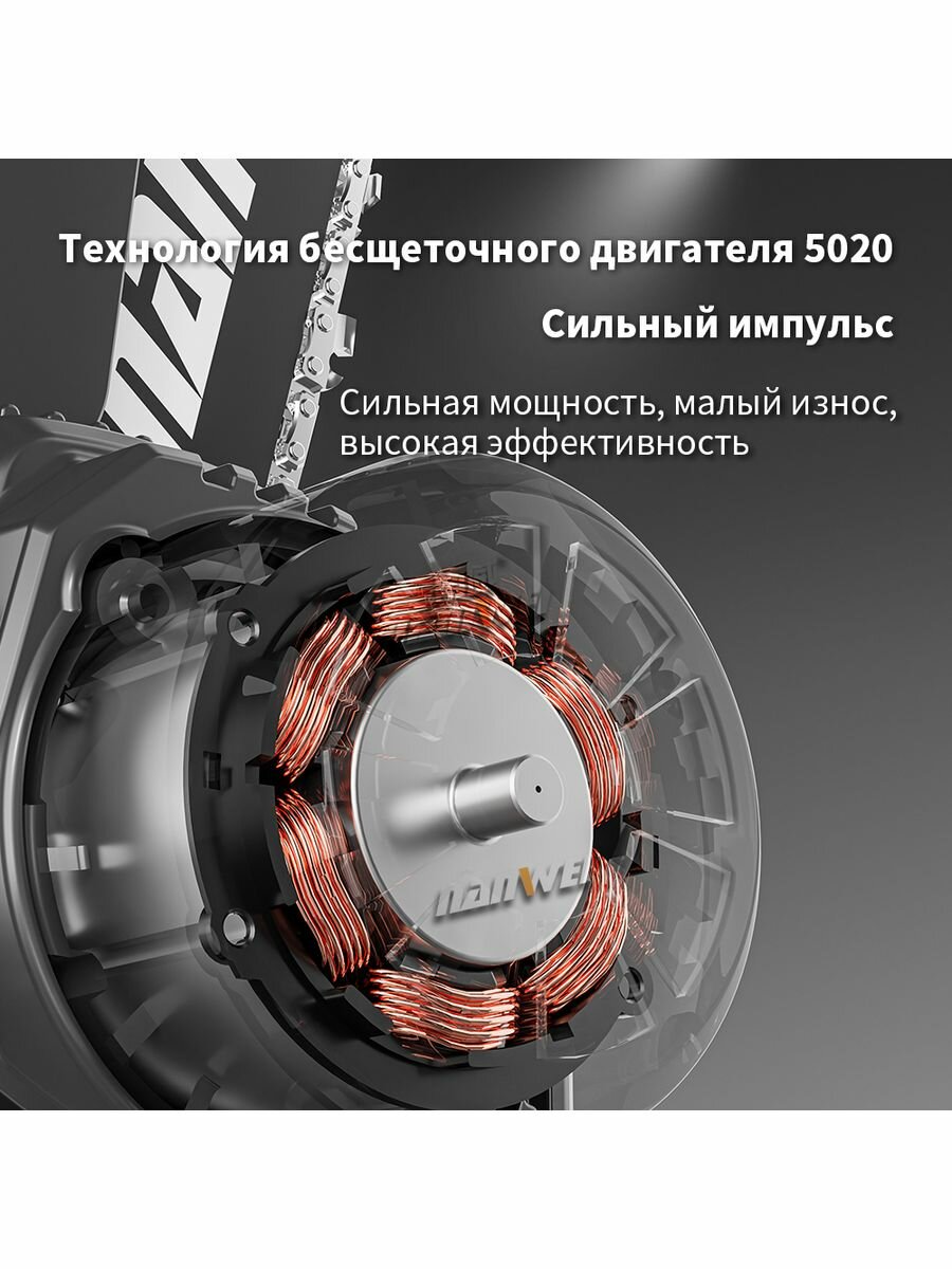 NANWEI 8" пила аккумуляторная цепная 21В беспроводной бензопила 6000r/min бесщёточный двигатель интересное: