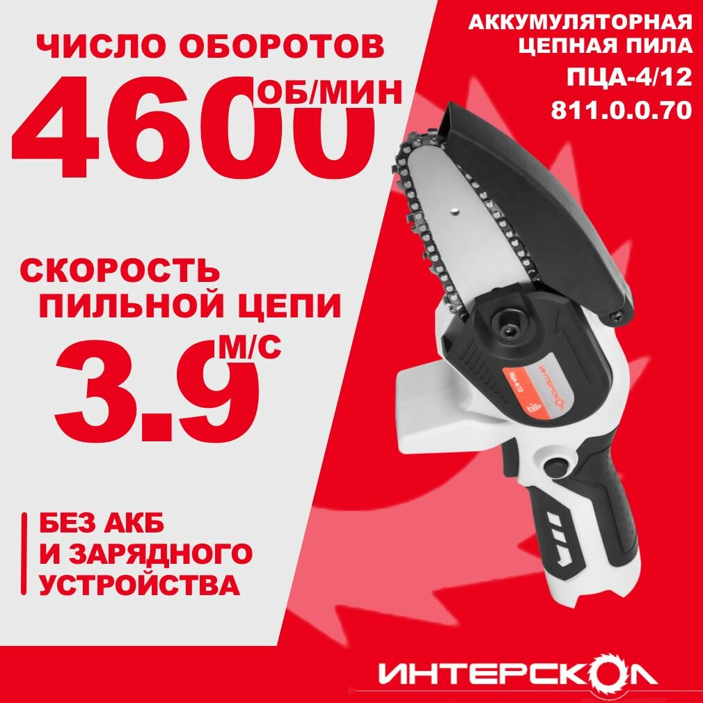 Аккумуляторная цепная пила ИНТЕРСКОЛ ПЦА-4/12, 12 В, без АКБ и ЗУ (811.0.0.70) интересное: