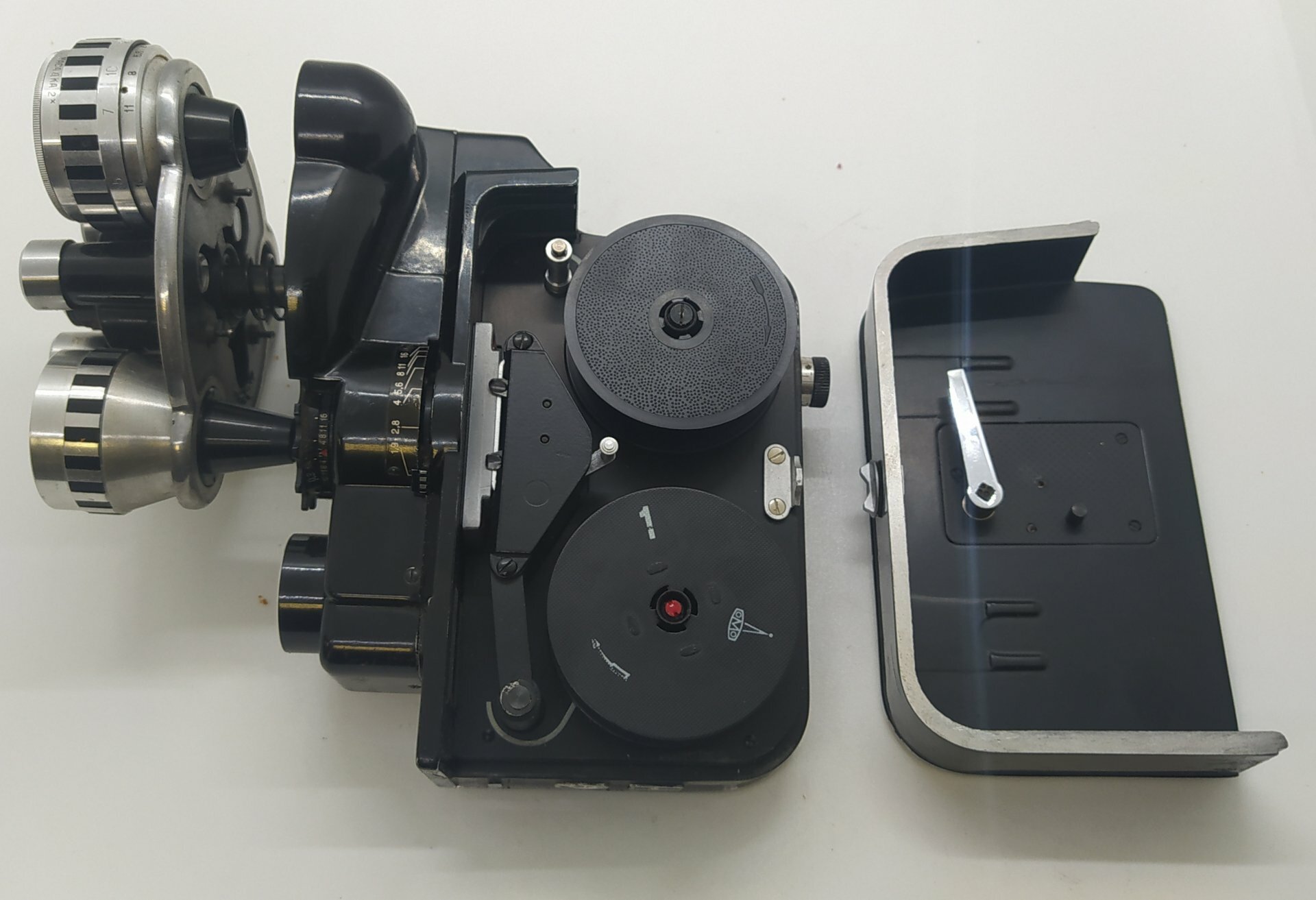 Кинокамера "Нева-2" в футляре с комплектующими и квитанцией, металл, стекло интересное:
