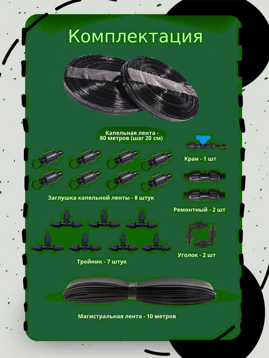 Капельный полив для теплиц и огорода от бочки на 80 метров, шаг 20 см интересное: