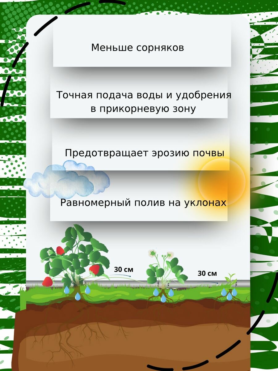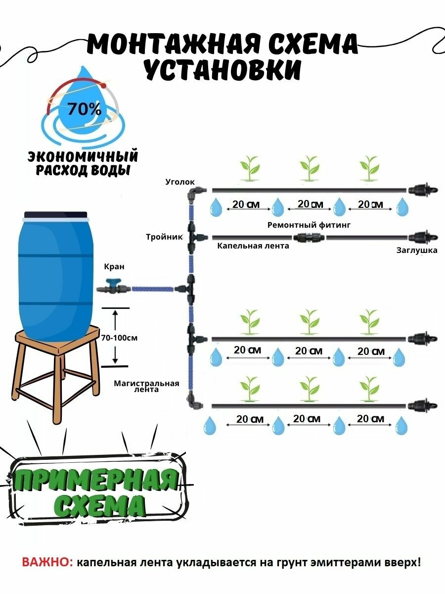 Капельный полив для теплиц и огорода от ёмкости 40 метров, шаг 20 см интересное: