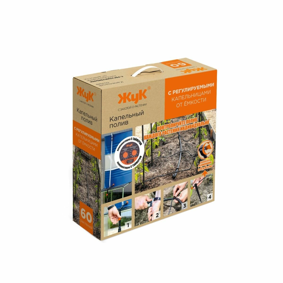 Купить Капельный полив Жук от емкости 60 растений с 2 канальным таймером тепличный