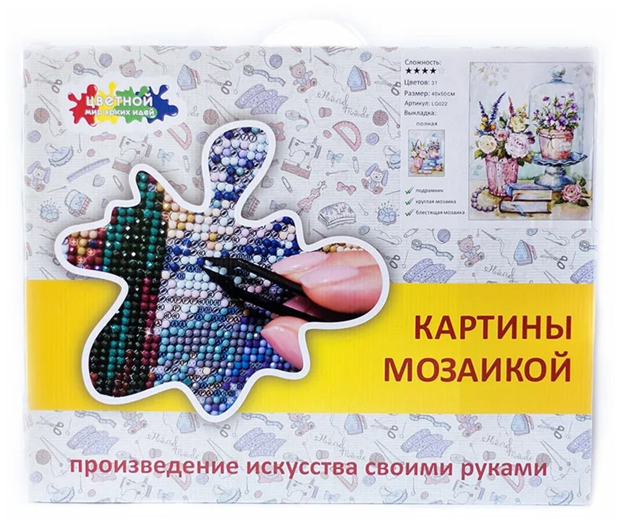 Ниже Вы можете прочитать отзывы на Алмазная мозаика Цветной «Натюрморт "Приятные мелочи"» (40х50 см, полная выкладка, круглые непрозрачные стразы), ознакомится с подробными характеристиками, посмотреть интересные обзоры и фотографии на Алмазная мозаика Цветной «Натюрморт "Приятные мелочи"» (40х50 см, полная выкладка, круглые непрозрачные стразы).